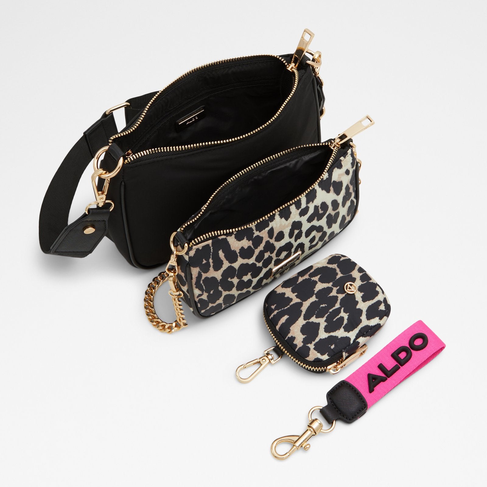 Our gorgeous little Acerar crossbody has to be the ultimate statement piece. Jet-black finish with bold leopard print insert and blingy gold-tone chain instantly amp up the glam factor for any outfit.
