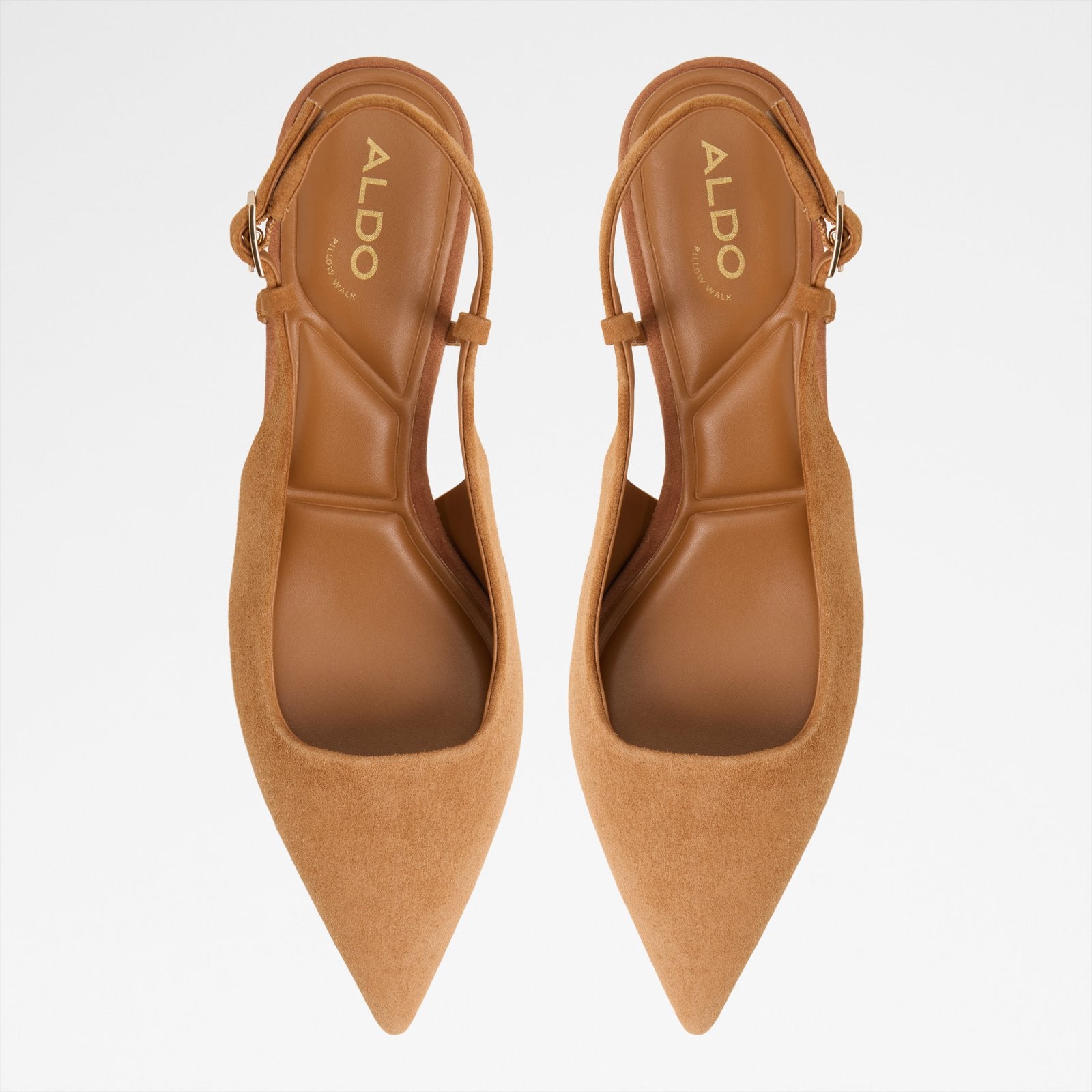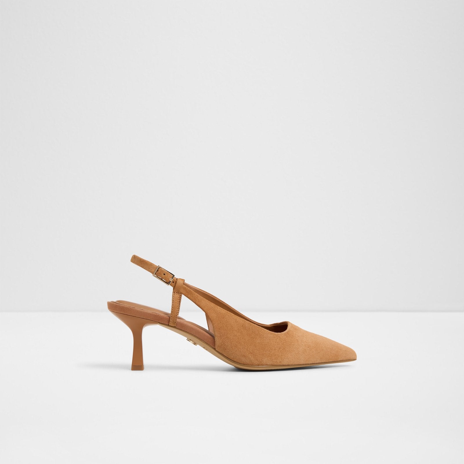This pointed toe style is feminine and flattering. Designed with a kitten heel slingback style that is both contemporary chic and classicly cool.