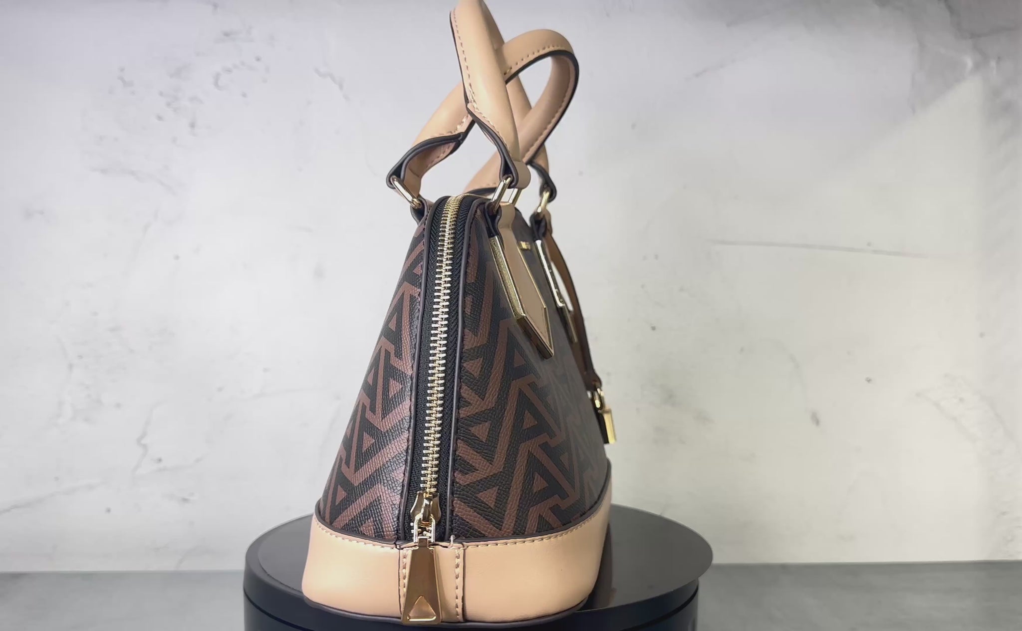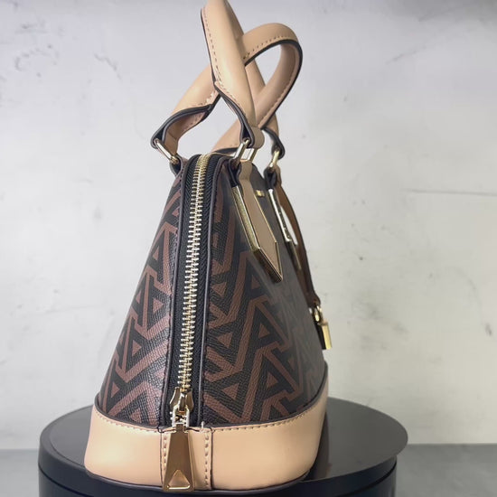 A small satchel with a unique domed silhouette, this structured style is sure to make a statement.