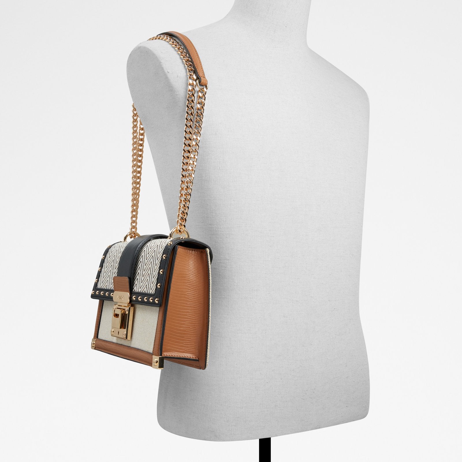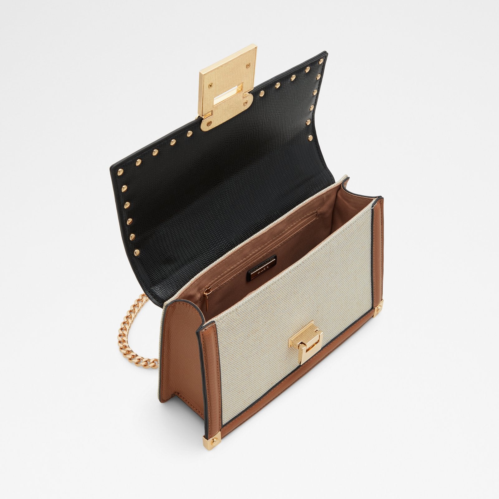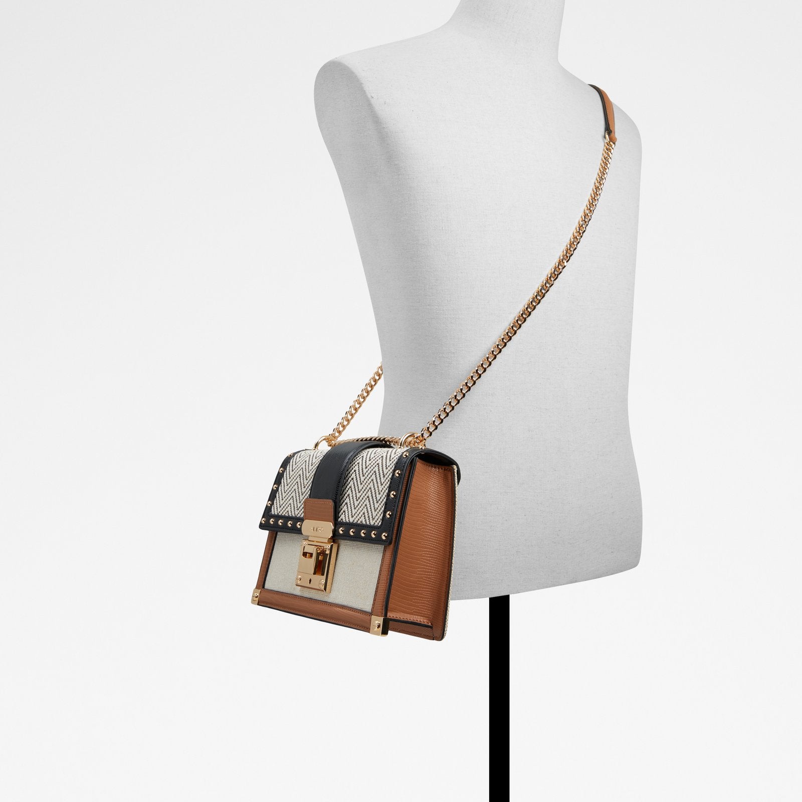 The luxe styling of our tailored Alanderiel crossbody is just so you. Classic tan/black/straw combo is a great neutral and that posh little luggage tag keeps this refined look feeling trendy.