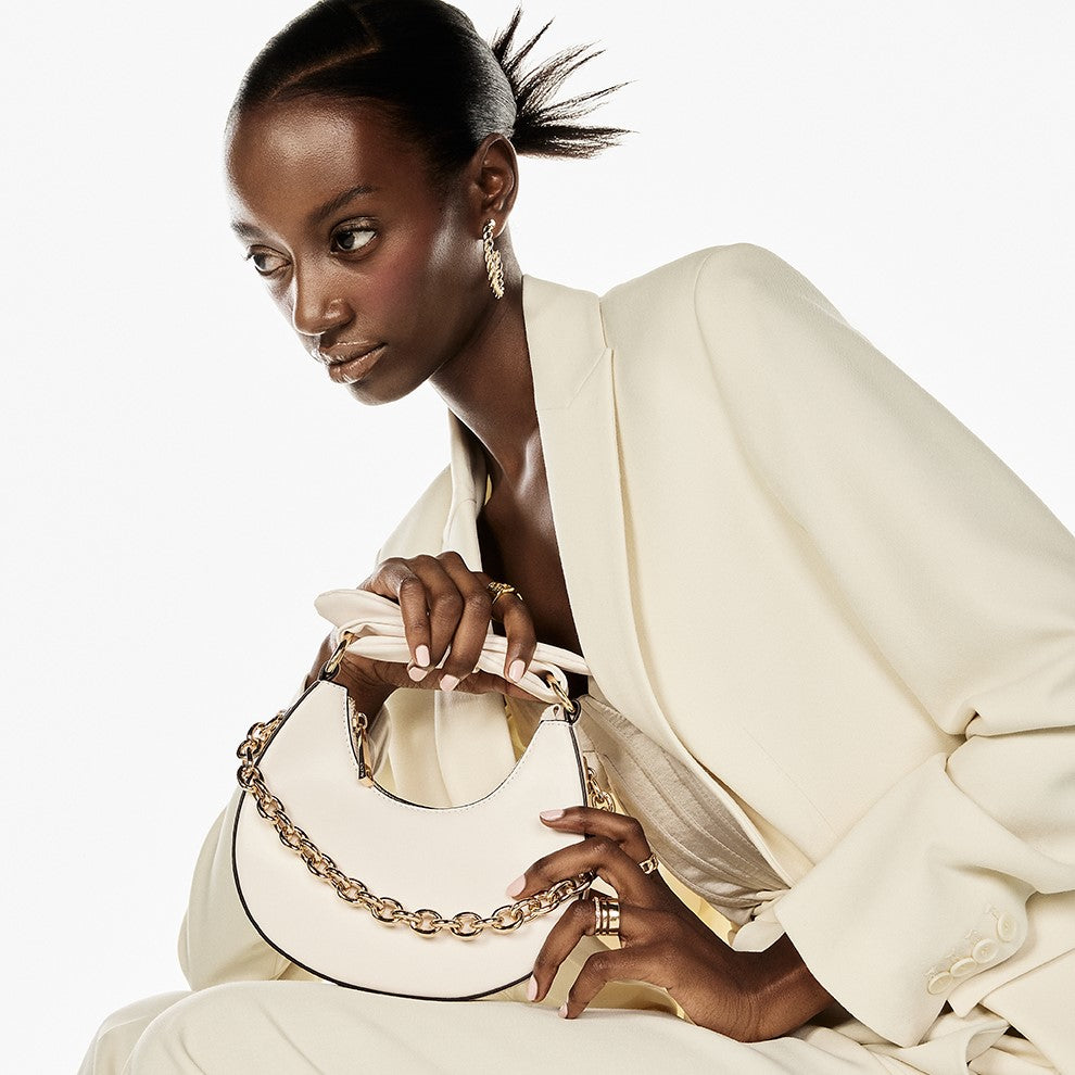 A different take on a basic shoulder bag with tie detailing and a structured shape