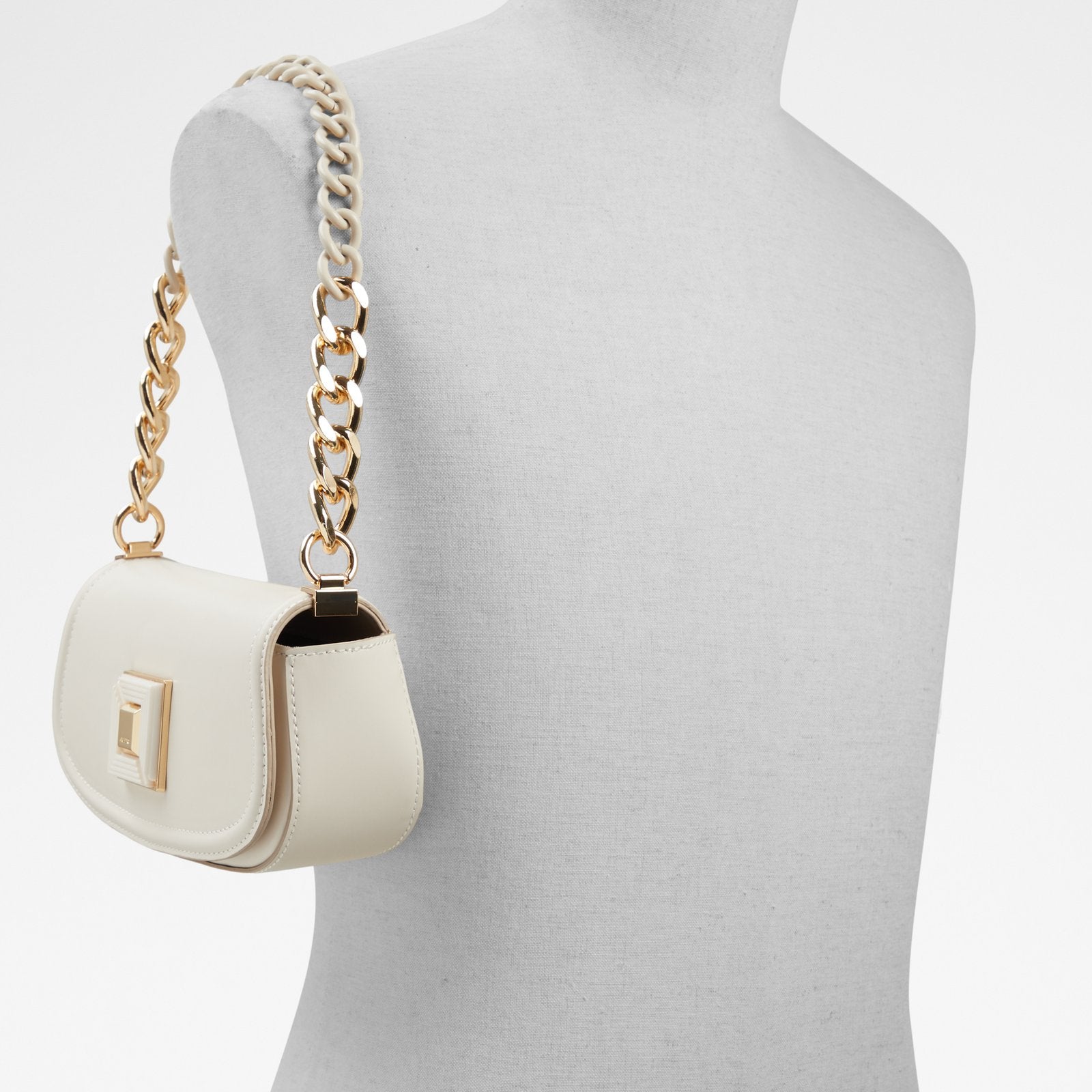 This structured shoulder bag features a gold chain chunky strap and gold hardware for a chic look.
