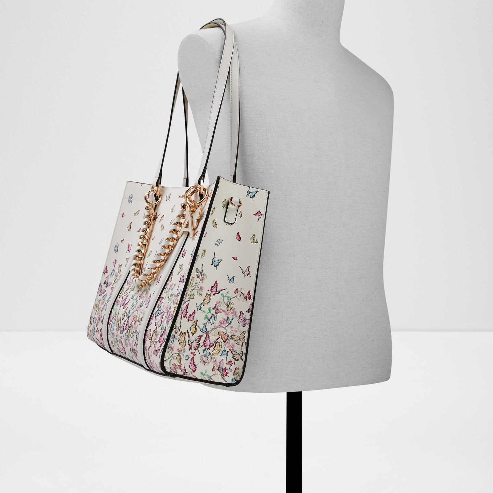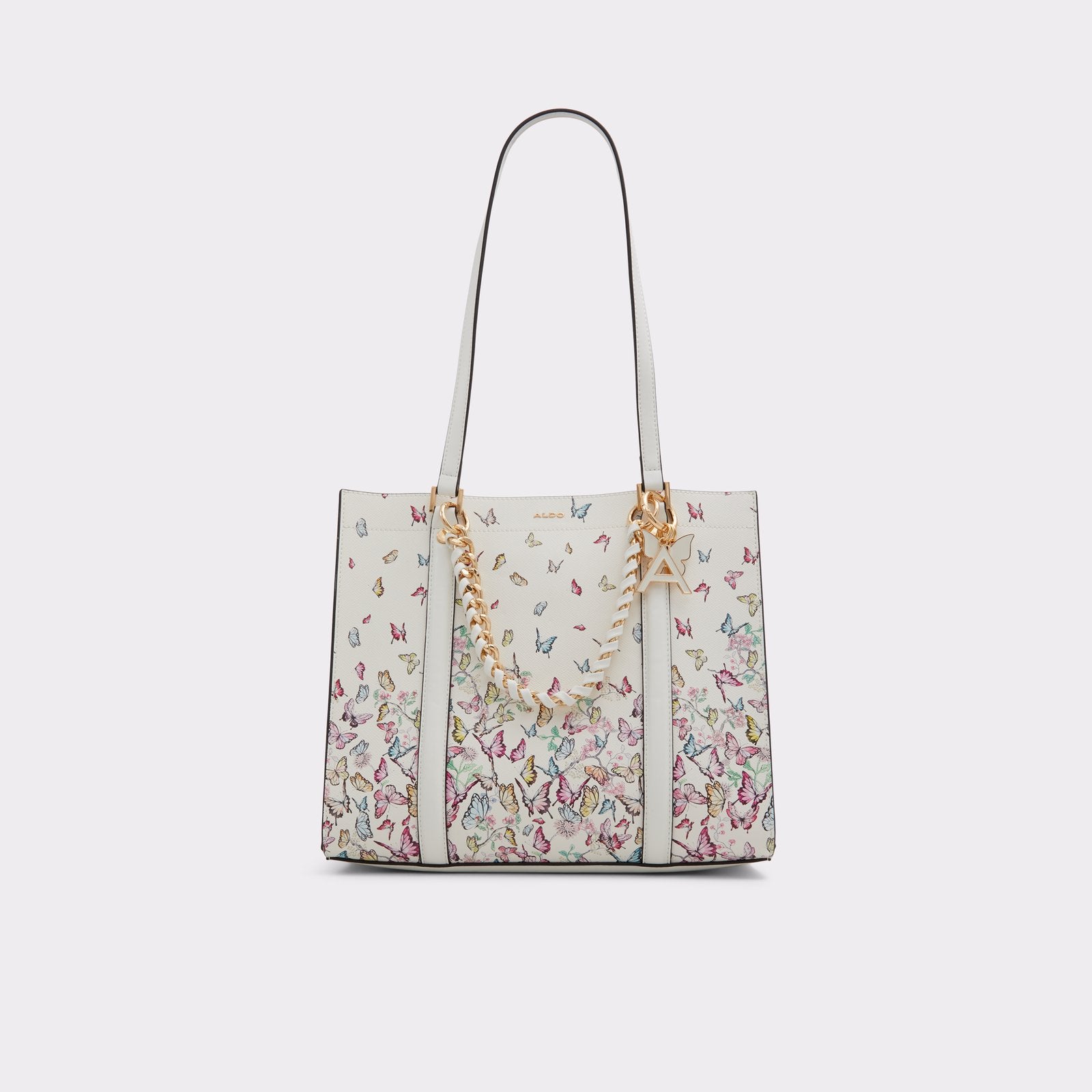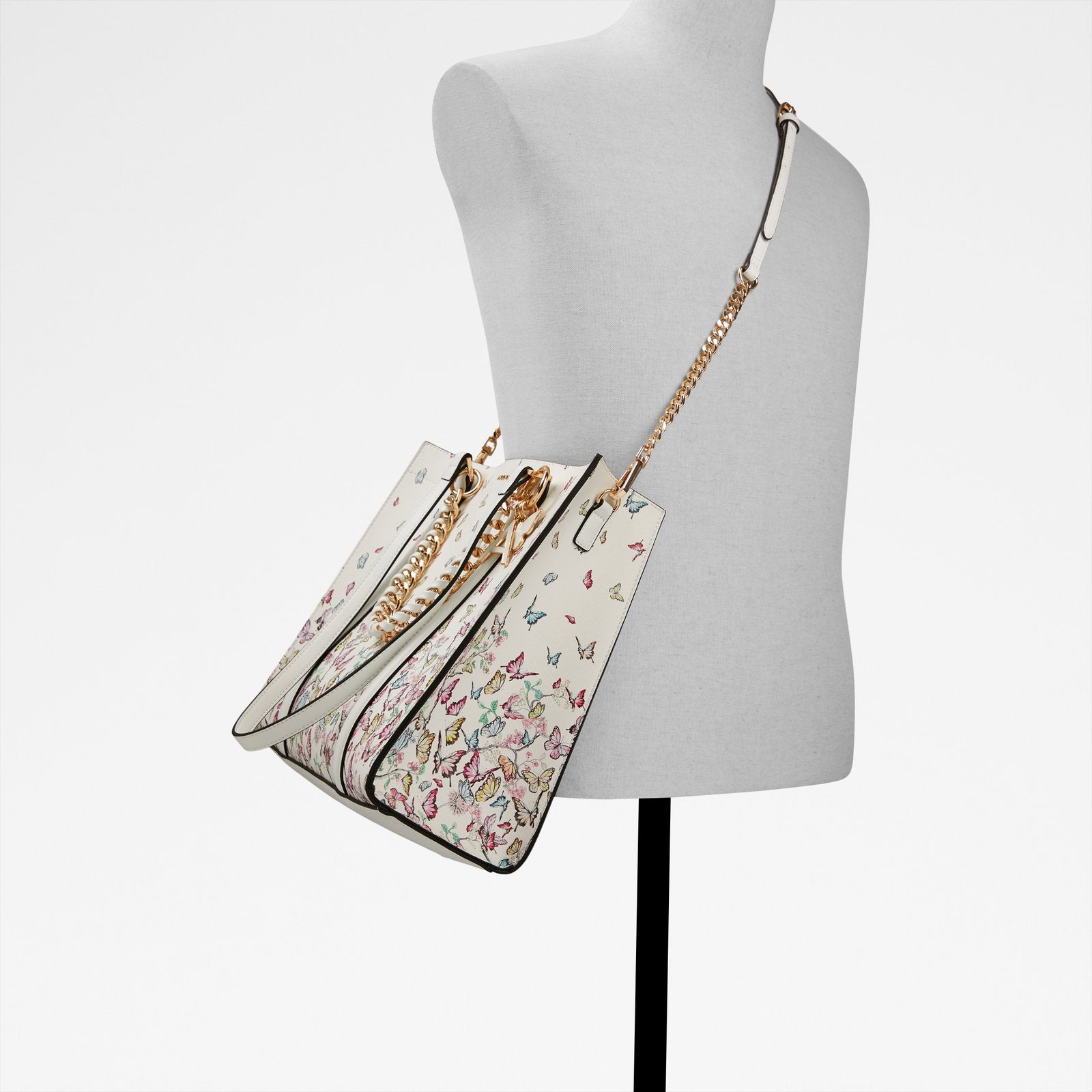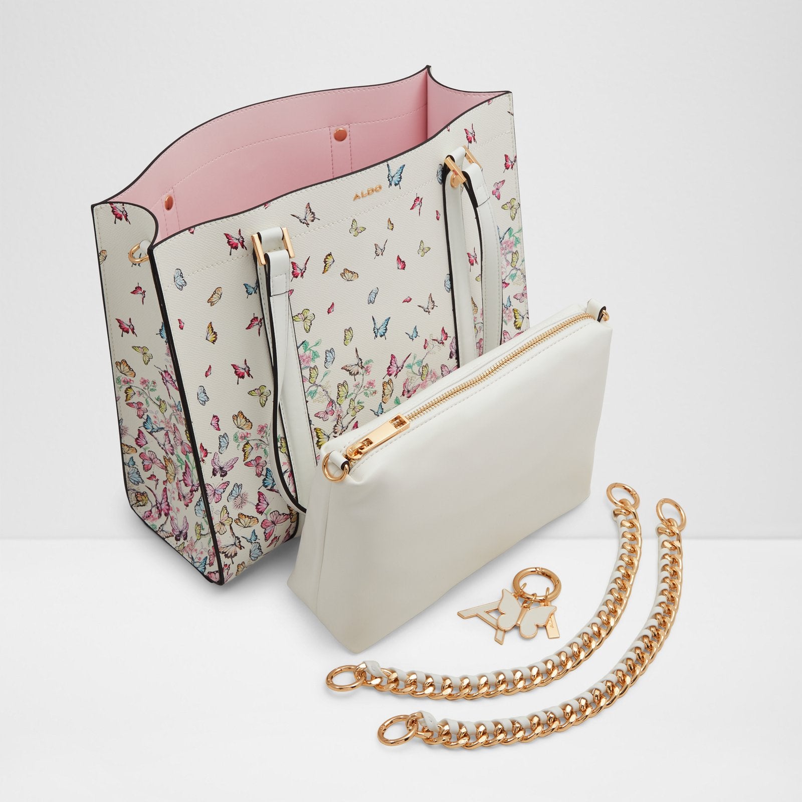 The relaxed style of our pretty little Ameli satchel is so you. Fresh white finish, candy color butterfly motif and that adjustable crossbody strap makes this bag perfect for a day of window shopping.