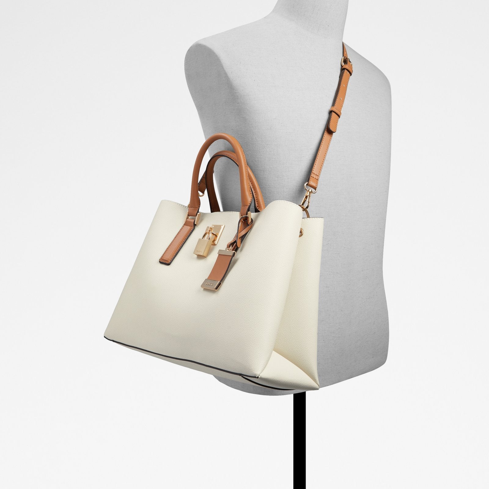 Channel your fun side with our super roomy Areawiel tote. Trendy bone/tan print, gold-tone hardware and that fun little padlock accessory together give this ultra-functional bag an upmarket vibe.