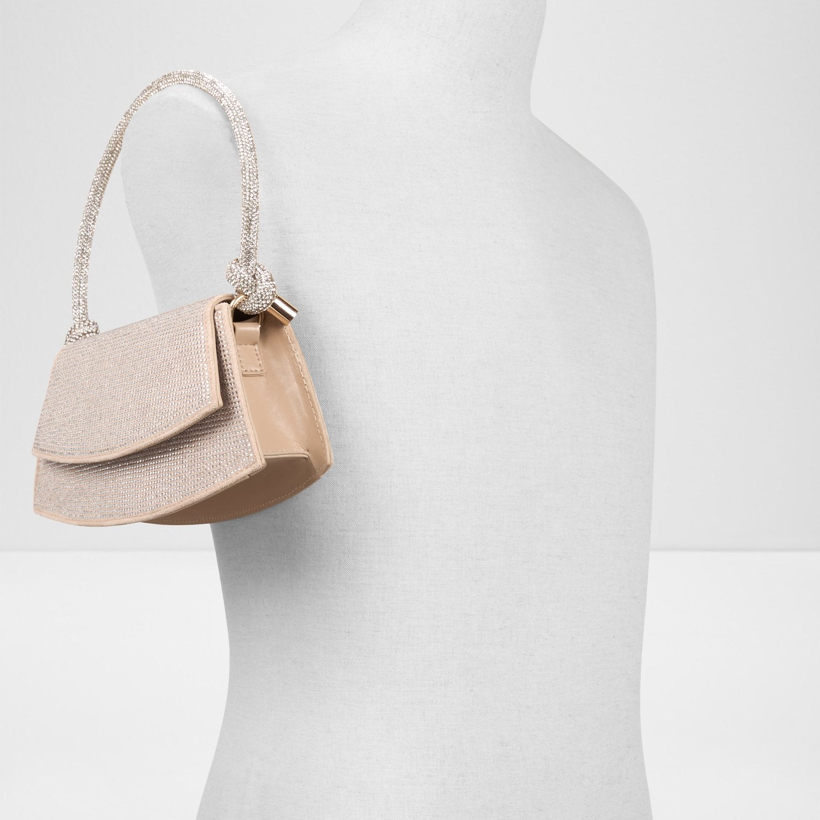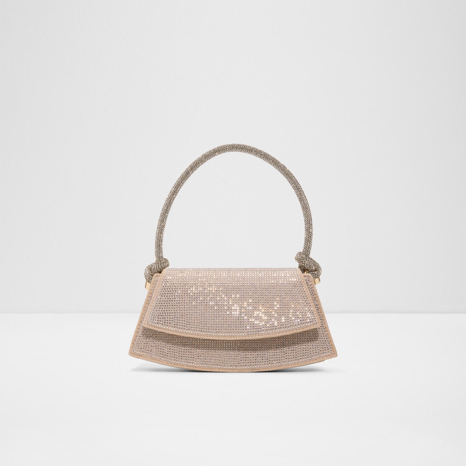Maximum glitz. This rhinestone-drenched shoulder bag is built to be noticed.
