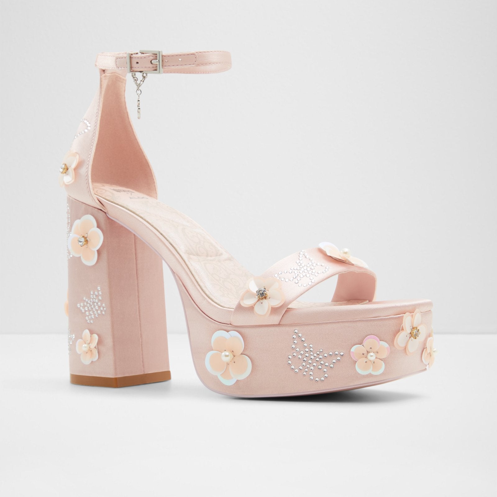 Posh and pink our fun little Beautifical platform is so ready to meet your friends. Satin finish, whimsical floral motif, and that big block heel – so fresh and on-point.