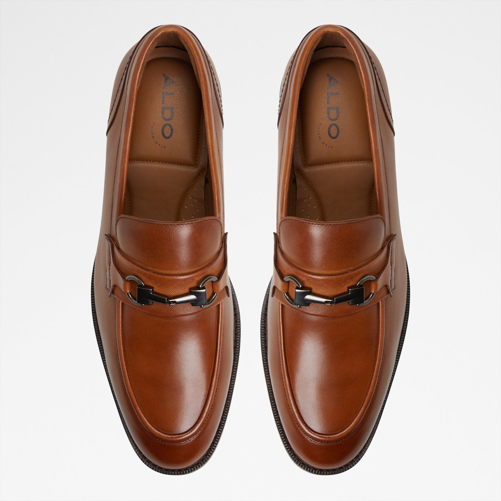 Sleek metal ornaments are thoughtfully placed on these smooth leather loafers, adding a touch of refinement to a wardrobe staple.