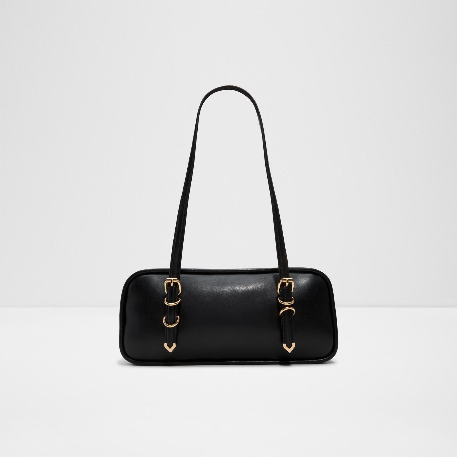 Cool and compact, this on-the-go shoulder bag has sleek buckle accents and a clean zip-top shape that's equal parts cute and functional.