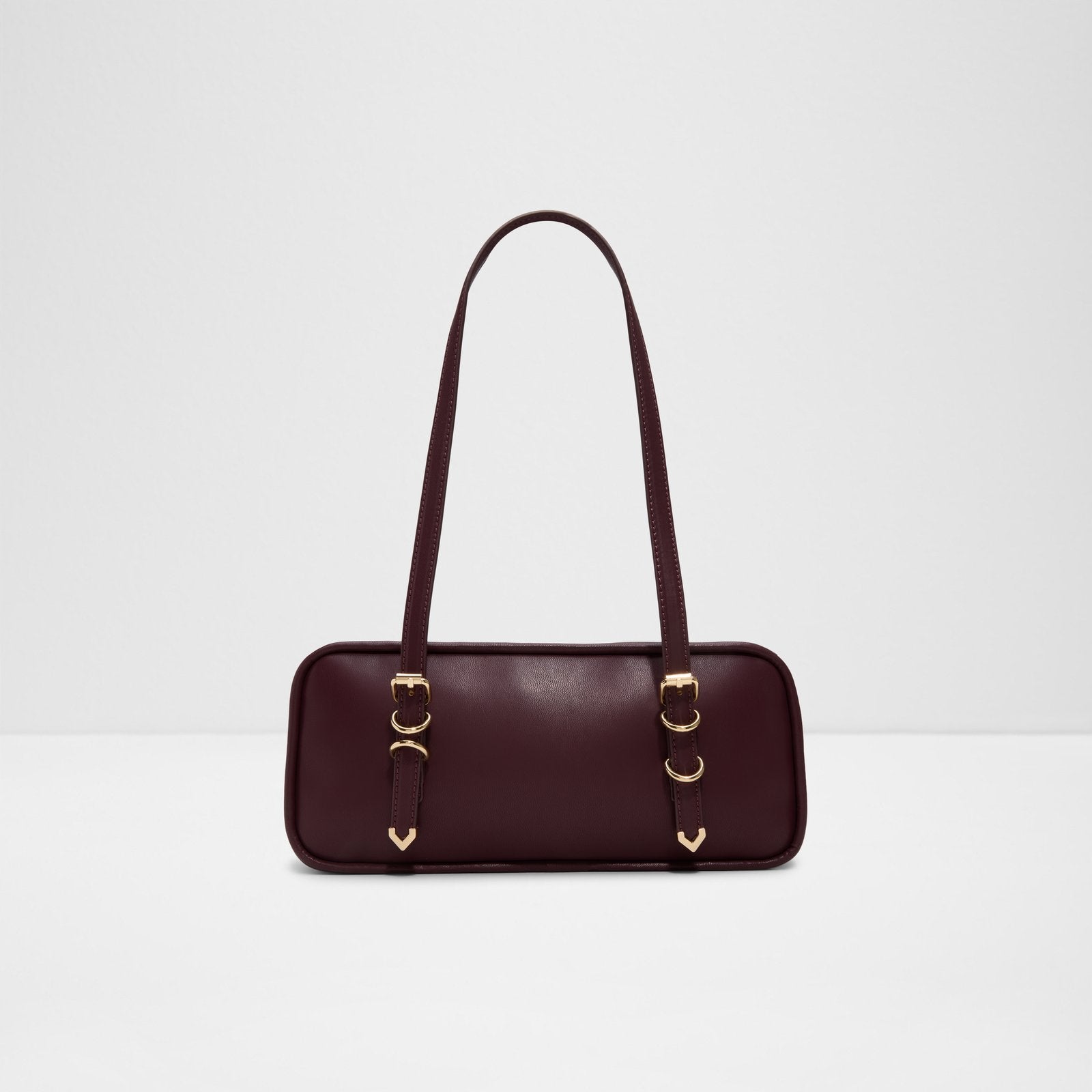 Cool and compact, this on-the-go shoulder bag has sleek buckle accents and a clean zip-top shape that's equal parts cute and functional.