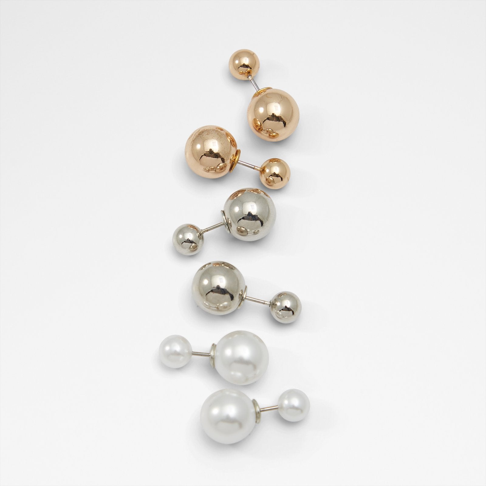This set of three stud earrings features a timeless mix of silver, gold, and pearl designs. Perfect for effortless elegance, they offer versatile styling for any occasion.