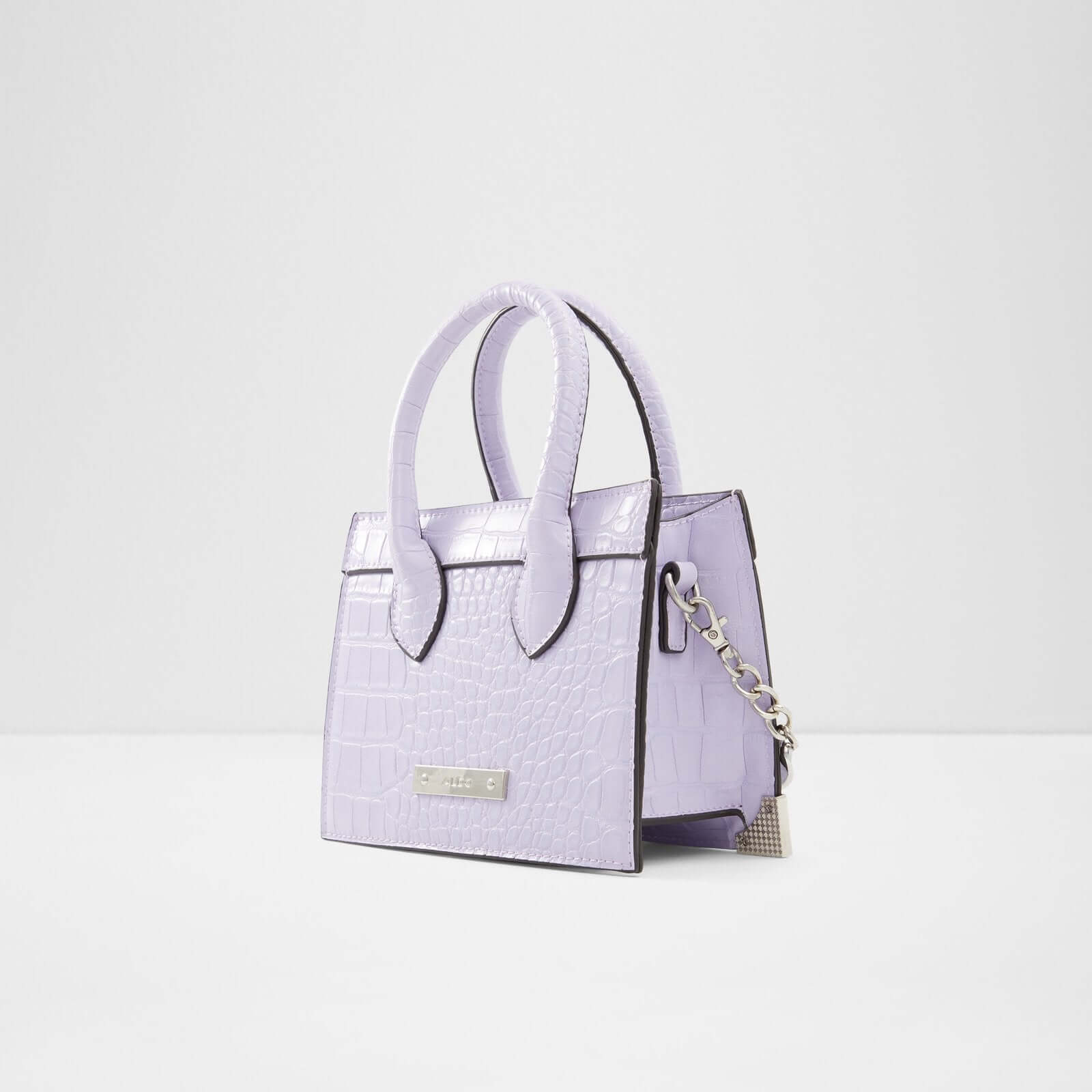 Ladies mini tote with non-removable rubber chain detailing and metal corners.