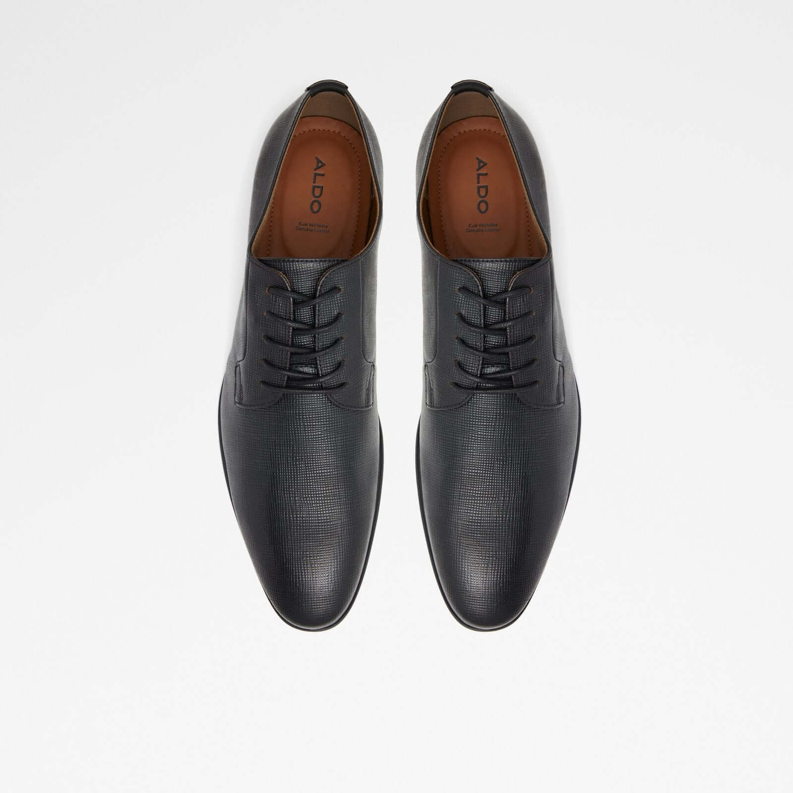 Textured embossed leather adds extra finesse to these lace up dress shoes with an excellent almond toe construction.