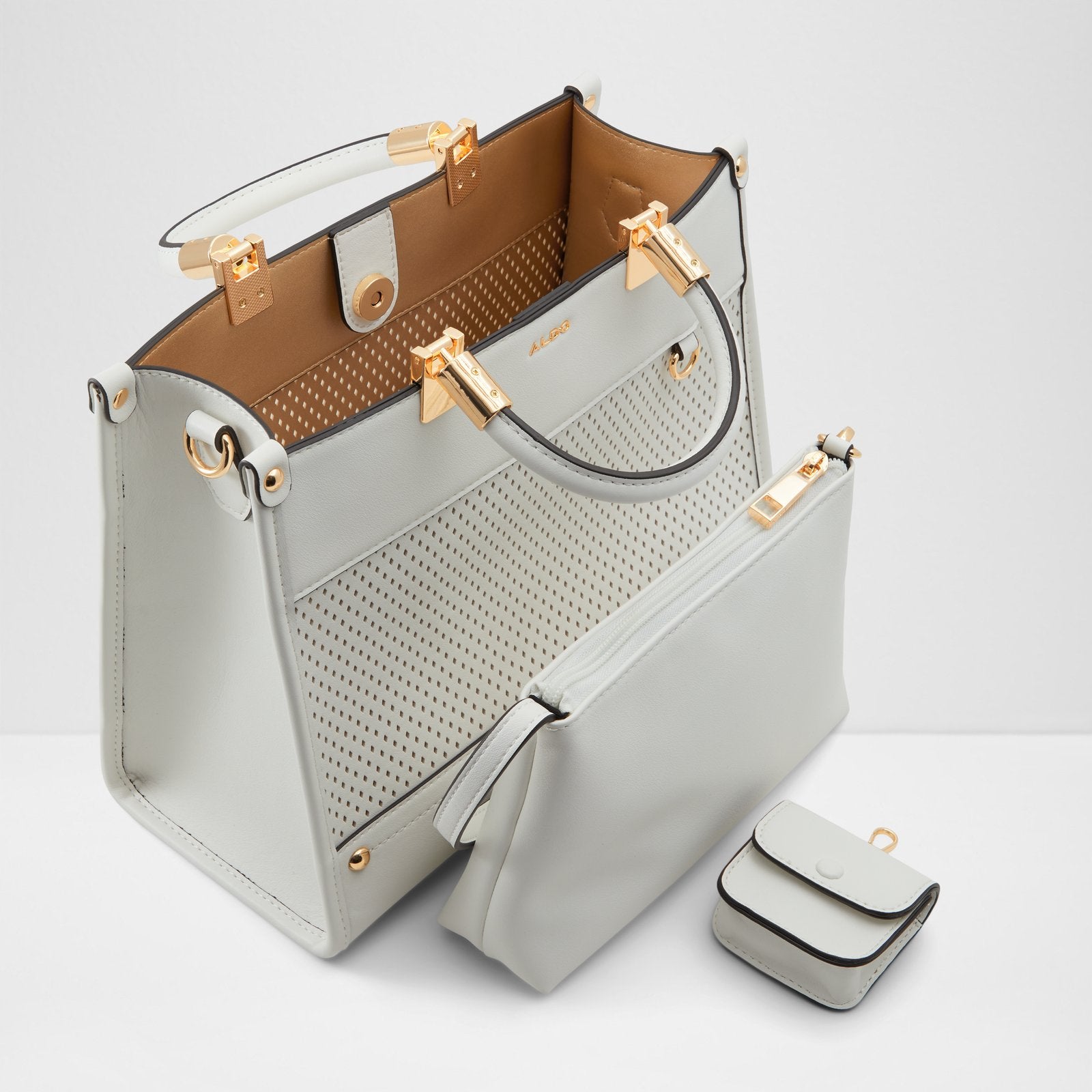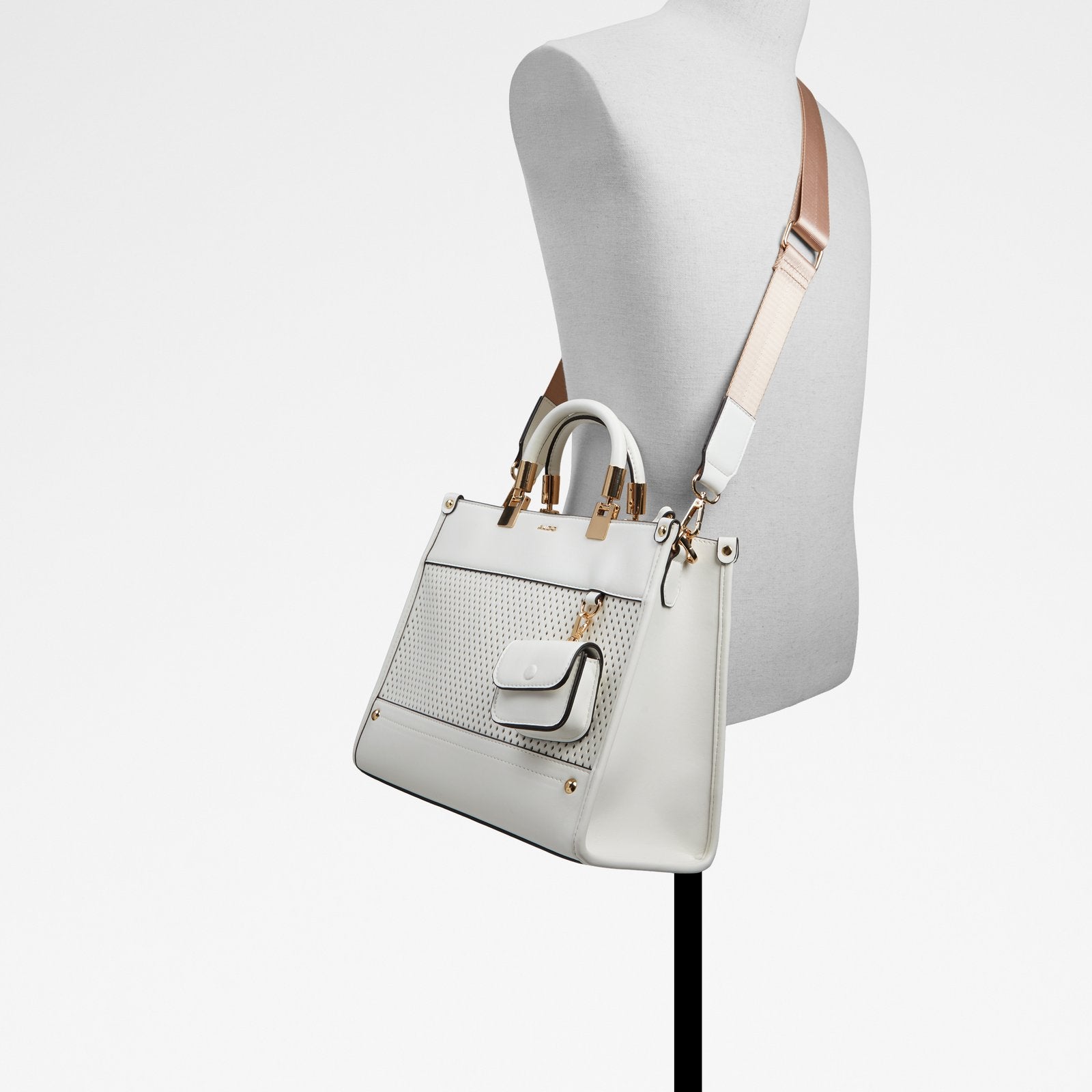 Perfect for a day out with friends is our roomy Daspiani handbag. Timeless white finish, top-zip closure, room to stash all the important stuff plus matching key fob and coin purse. So organized!
