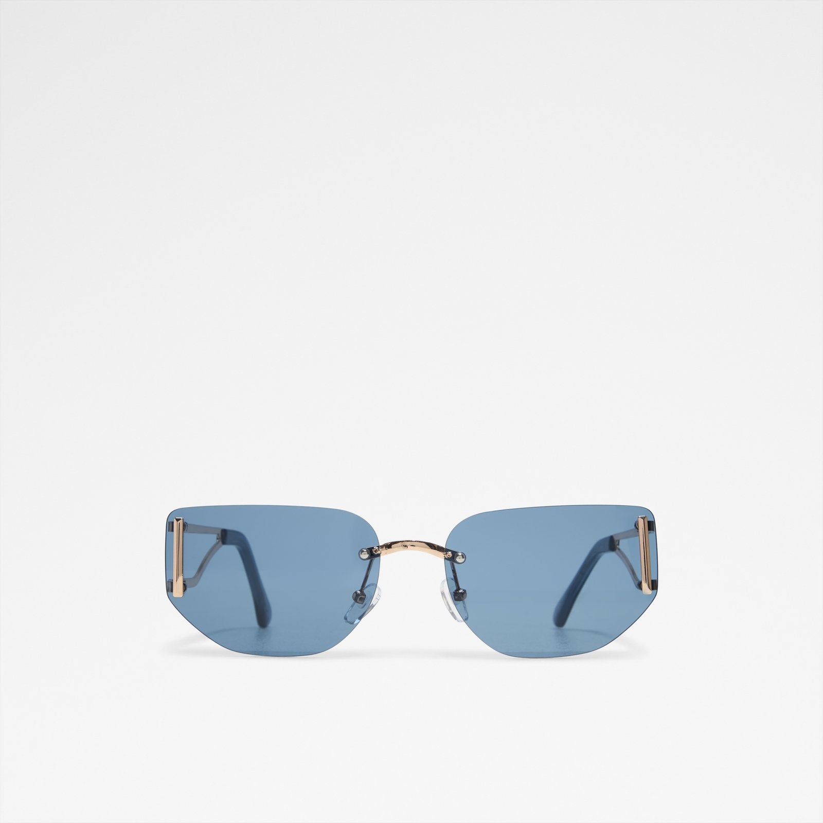 These gold frame sunglasses with blue lenses combine a sleek, modern look with a cool pop of colour.