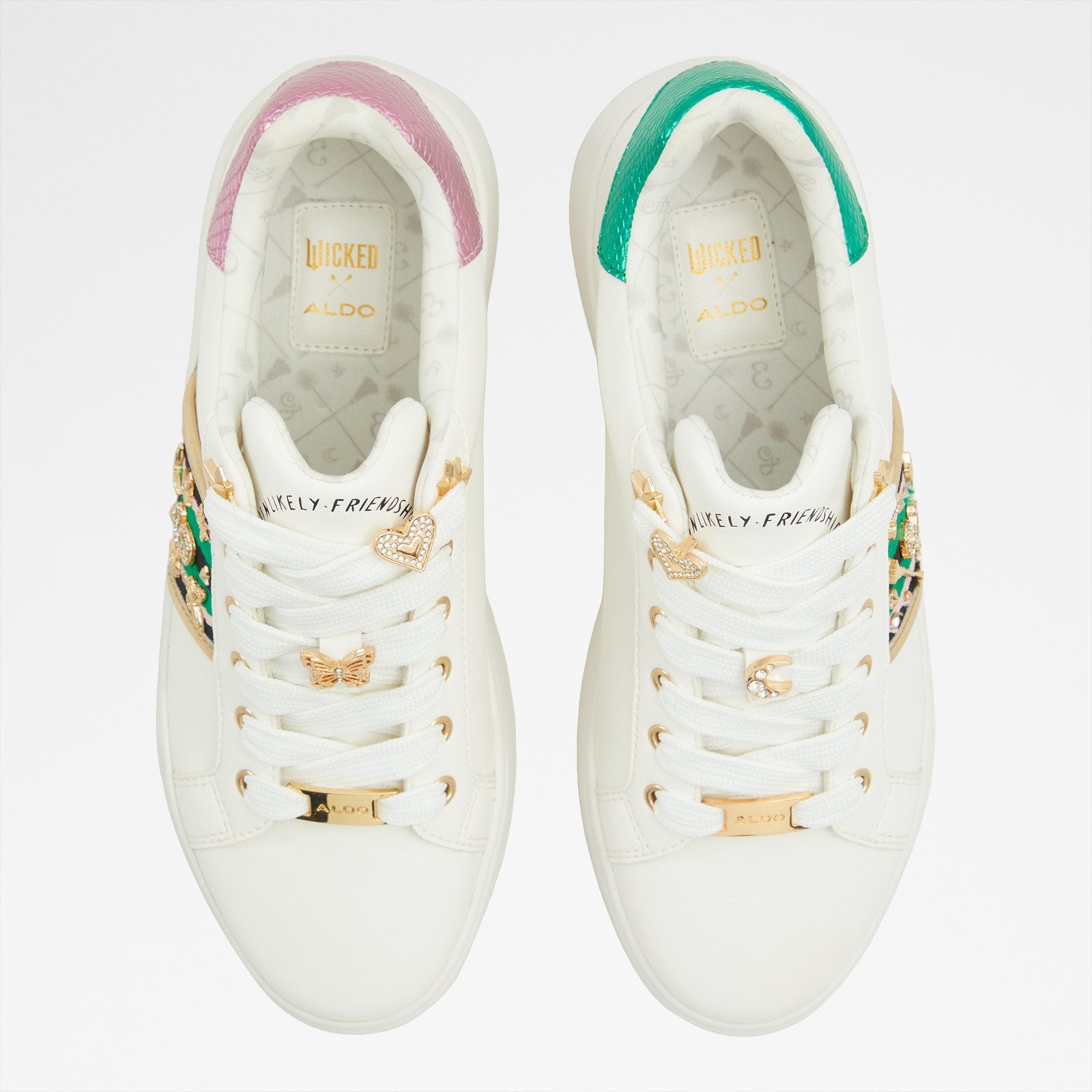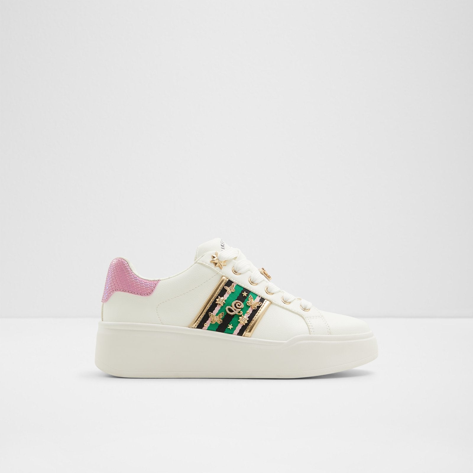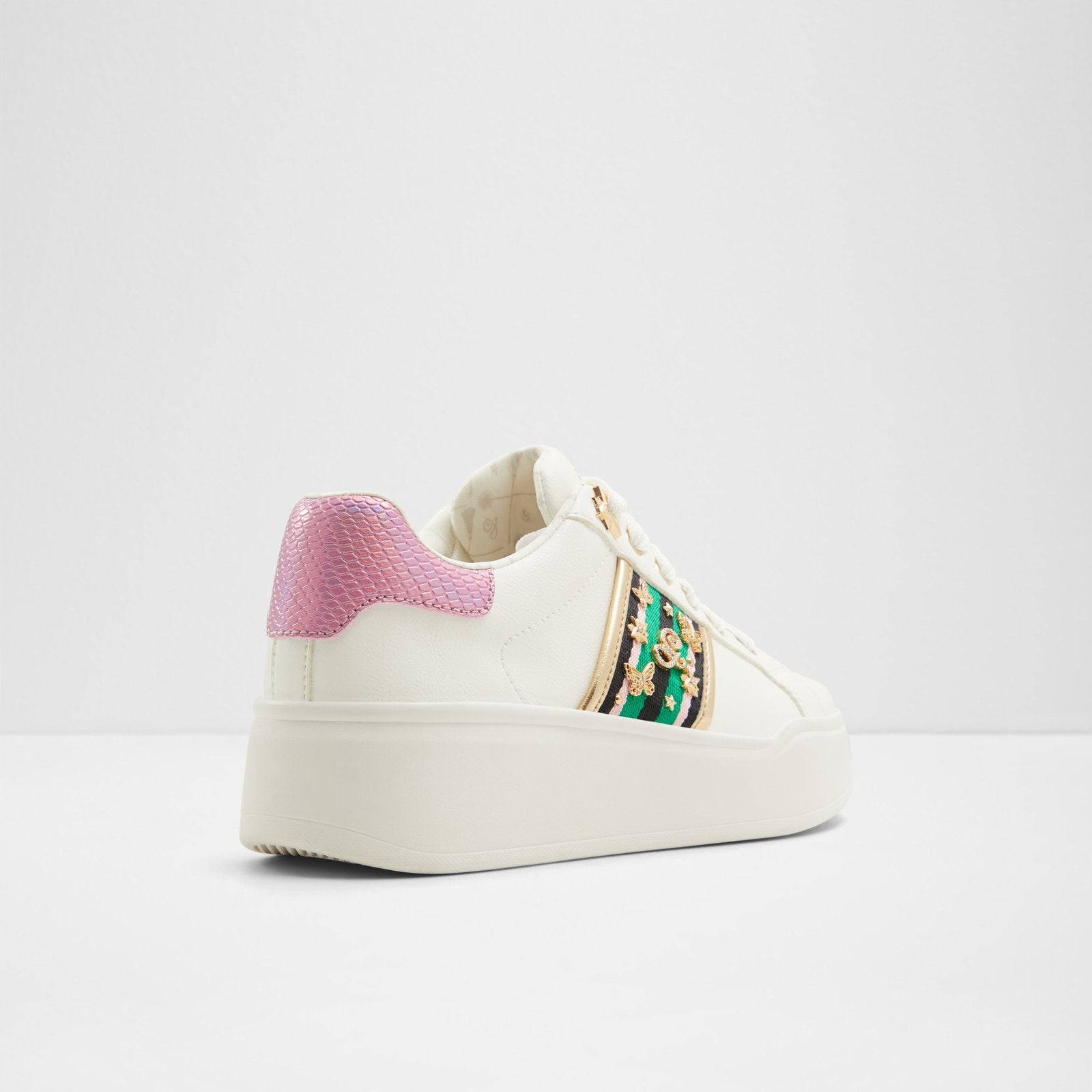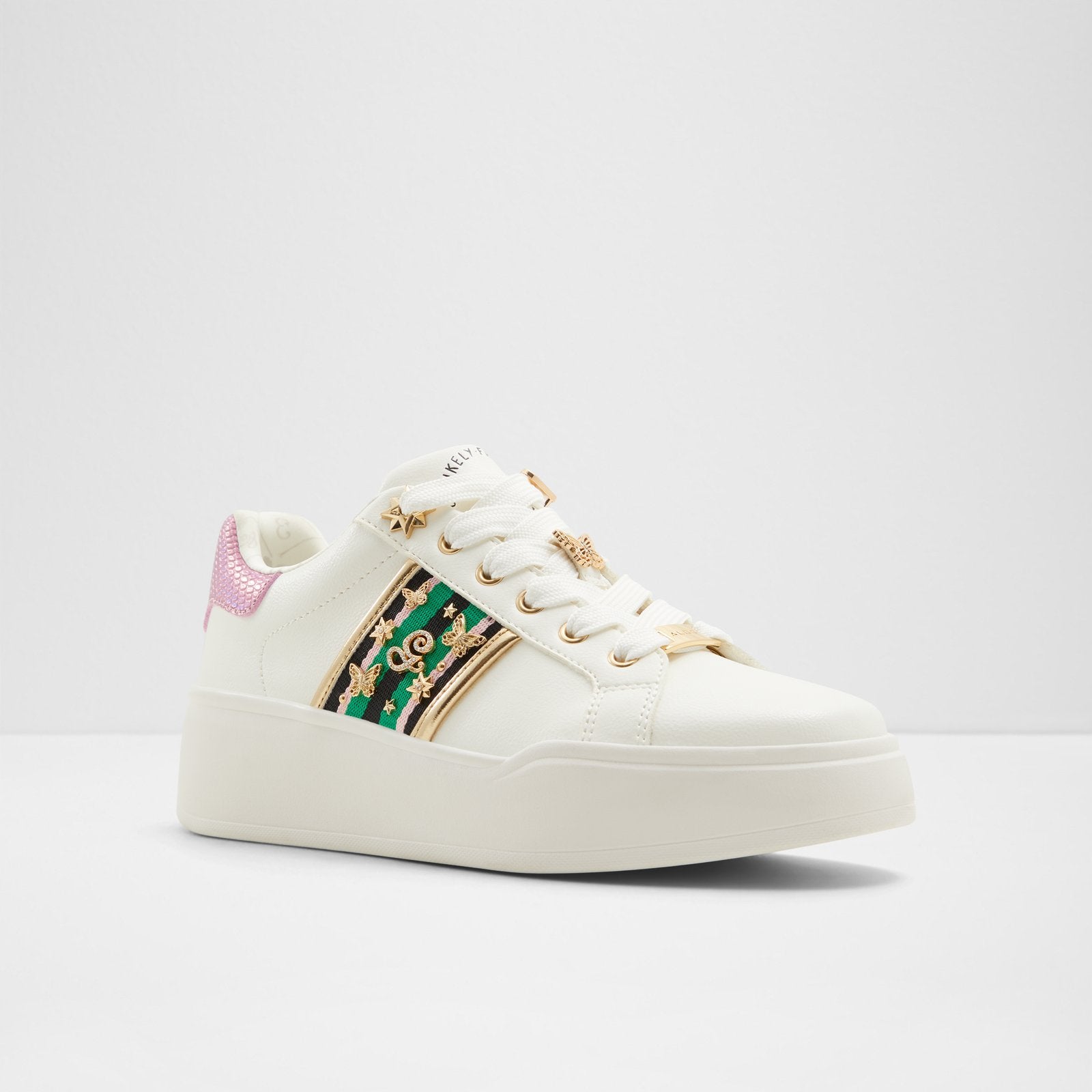 Your fun style is showing with this sporty little Destinedtofly low-top. Gorgeous bright white uppers get the glam treatment with blingy embellishments. So you.