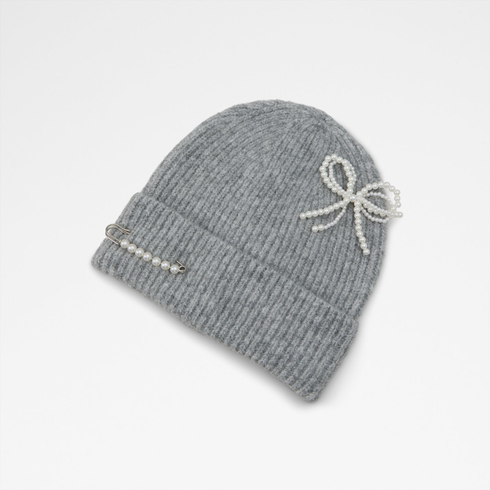 Soft ribbed wool meets street-sweet attitude in this grey beanie, where a delicate pearl bow and matching pin play unexpected glam against the cozy knit. Top a plaid shacket on chilly coffee runs or frame a slick leather trench at after-dark gigs, letting those pearls catch city lights.