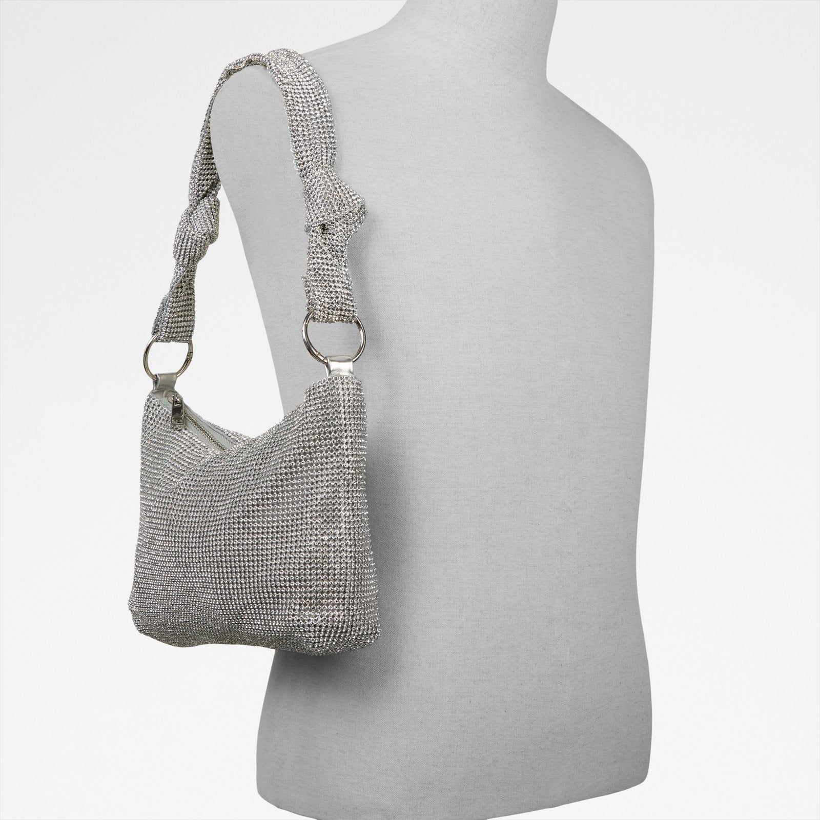Bling on bling, our silver Diamonella shoulder bag with rhinestone detailing is that perfect statement piece your out-on-the-town look was missing. Problem solved!
