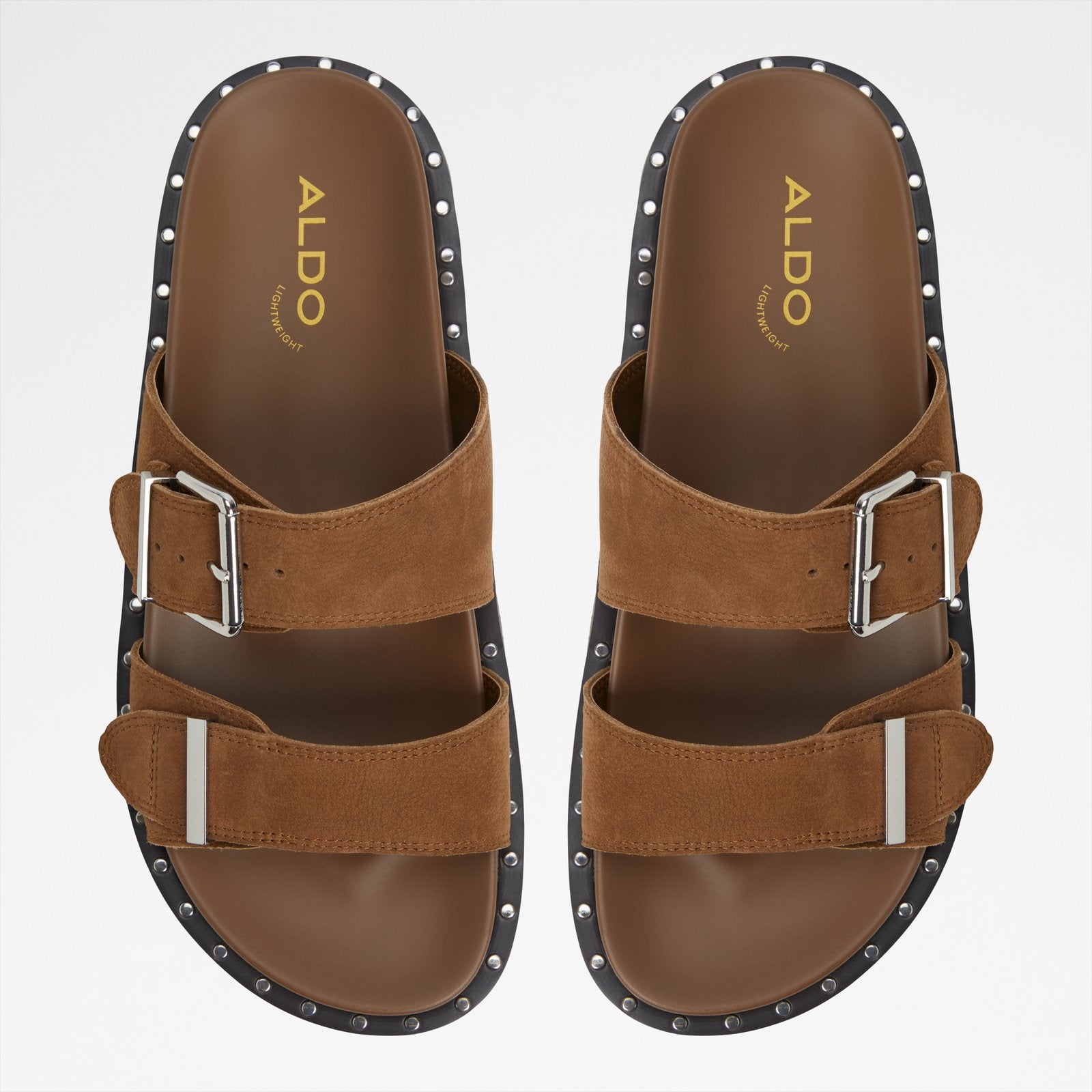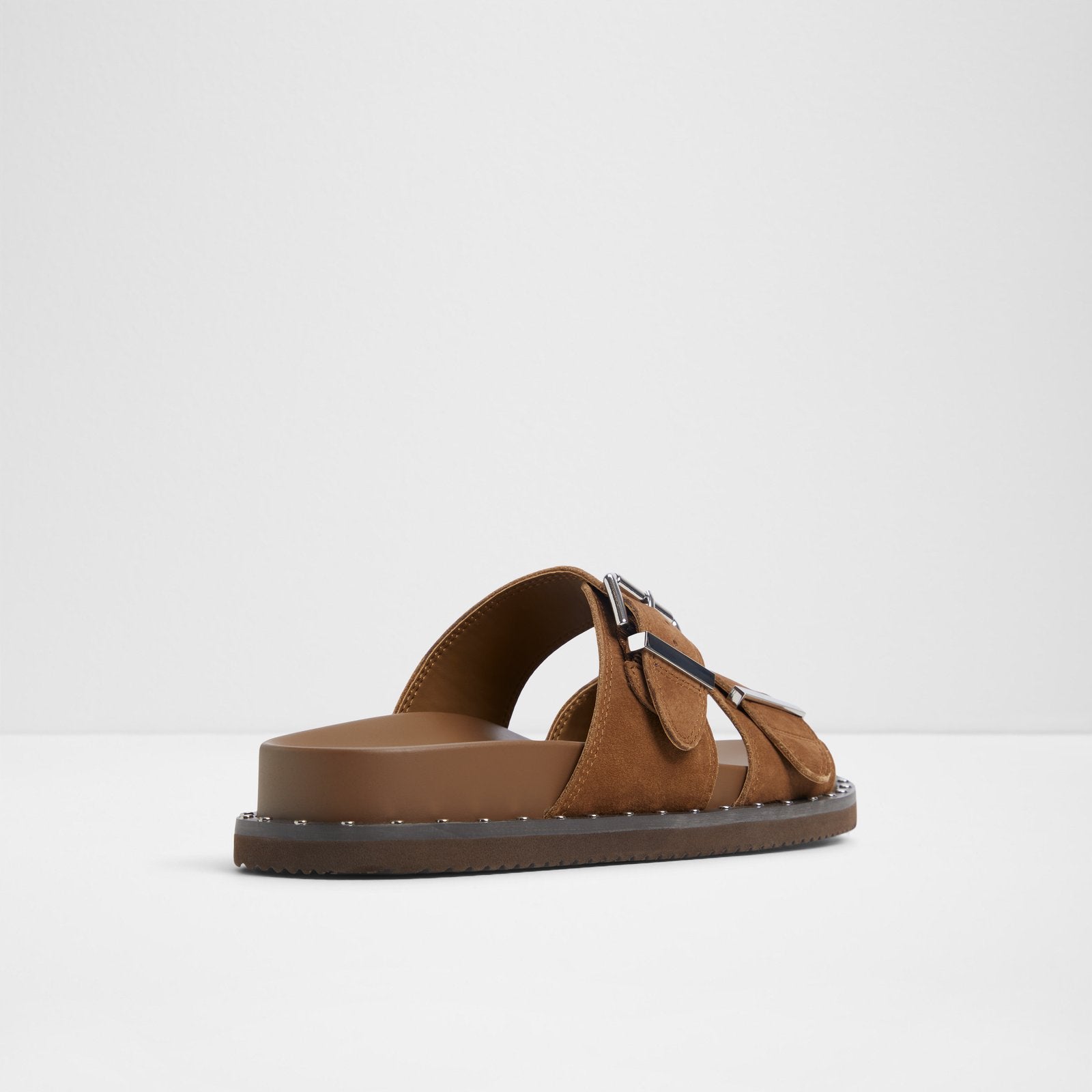 Step into style with these light brown strappy flat sandals, featuring a buckle closure and metal ornament for a trendy touch. Perfect for effortless, comfortable wear.