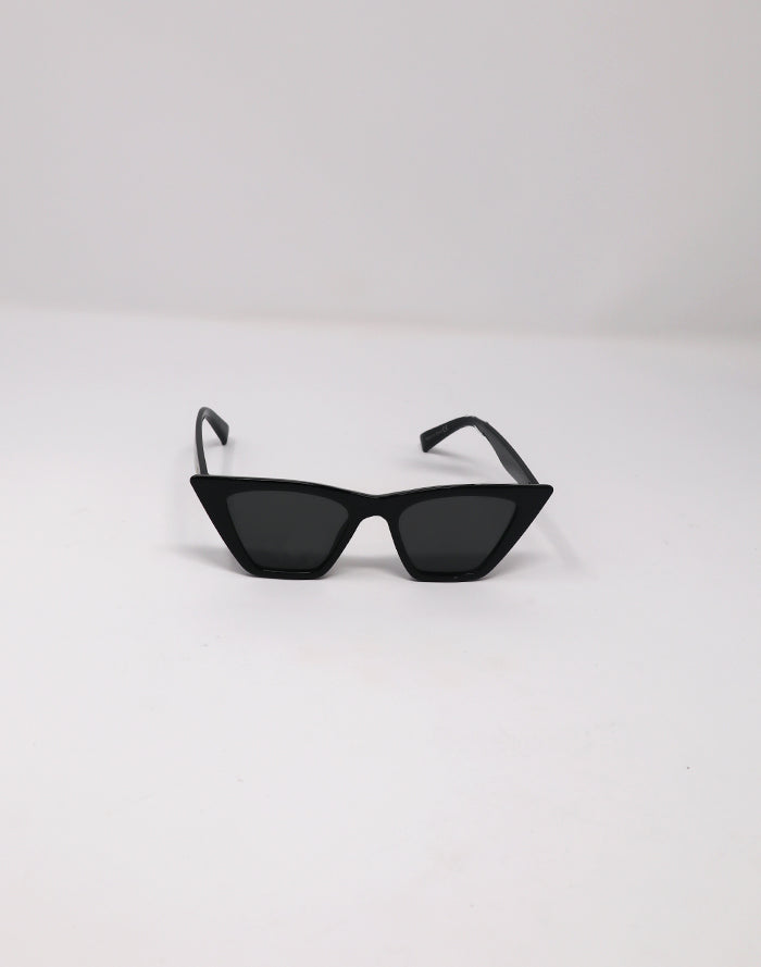 For understated elegance, this dramatic-looking pair of cat-eye women’s sunglasses is what it’s all about. Clean, simple lines with jet-black frames feature smoke-tinted mono lenses while simple black arms complete this on-trend look.