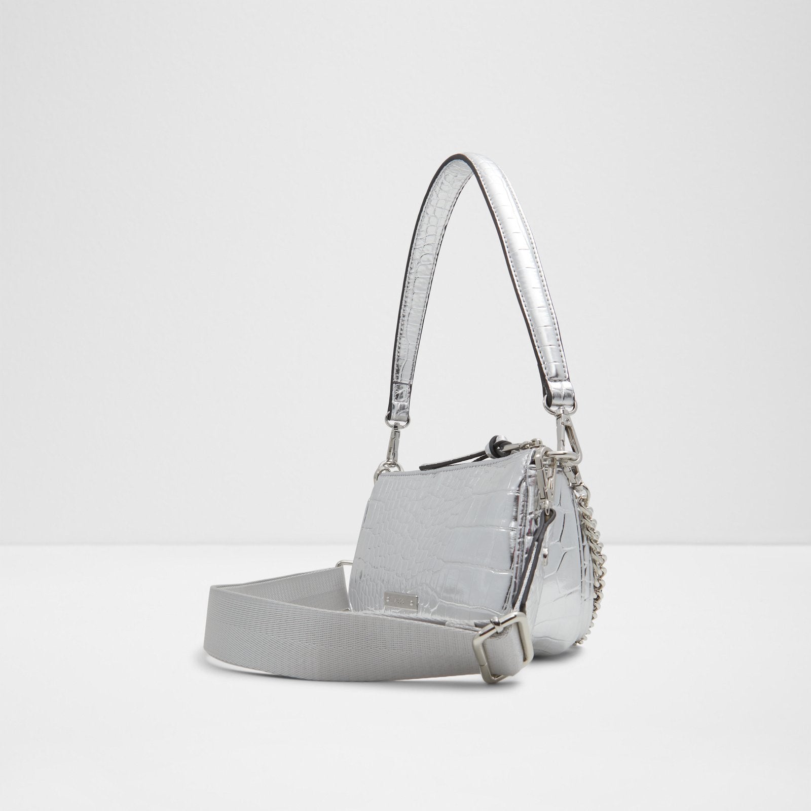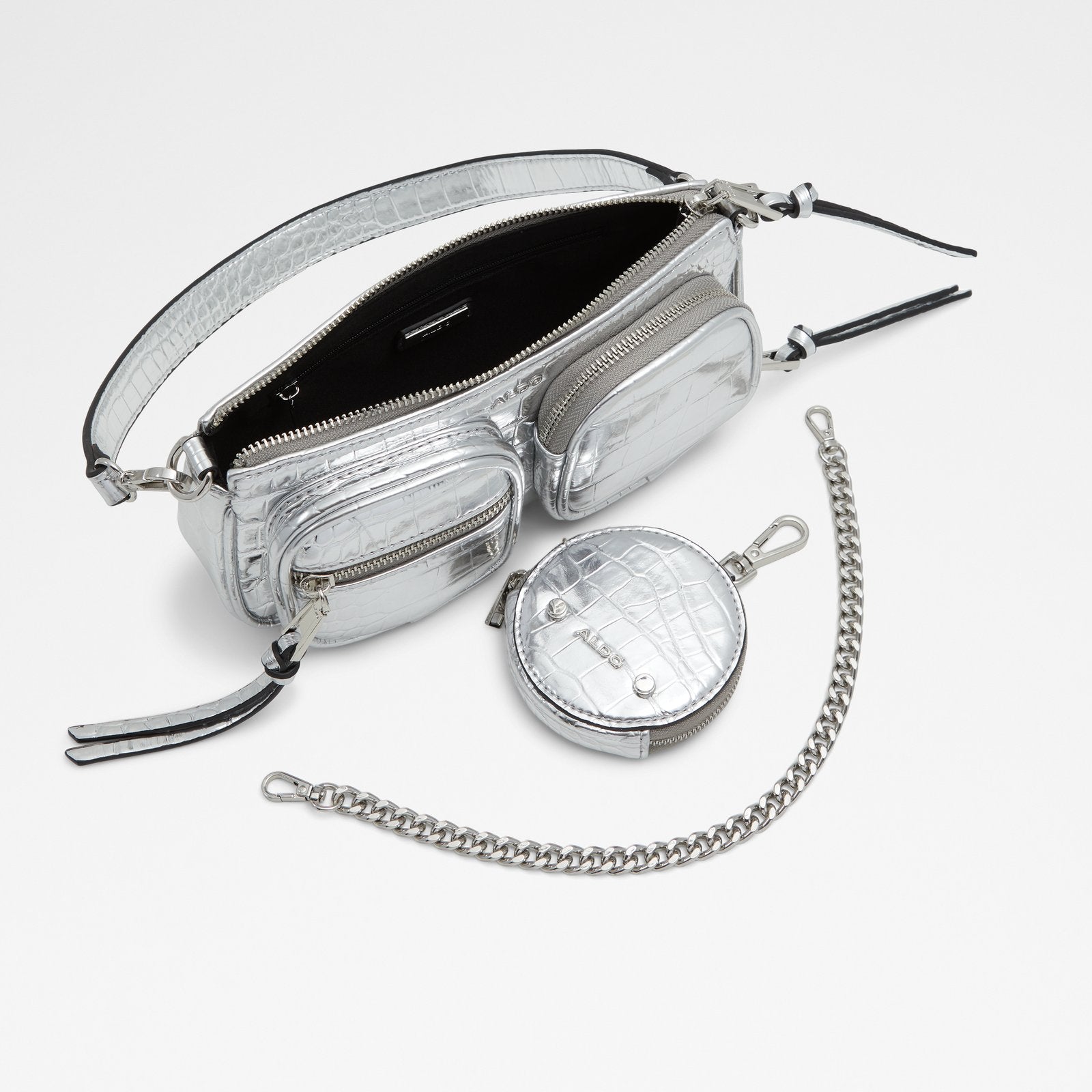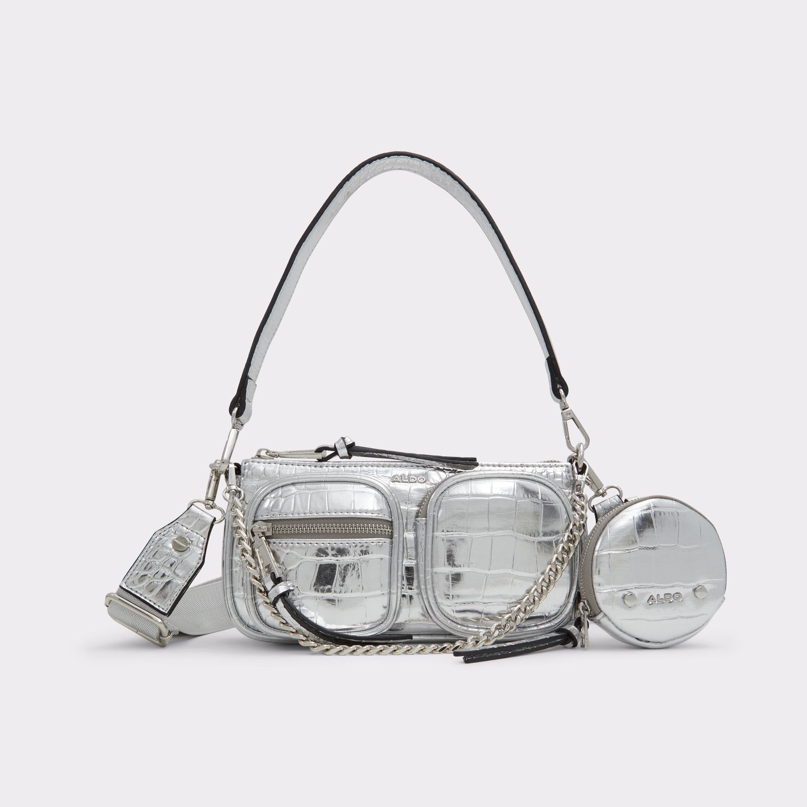Launch right into your busy weekend with our trendy little Everyday crossbody in sleek silver. Roomy enough to stash cards and phones yet perfectly sized to tuck under-arm while shopping sales or sipping lattes.
