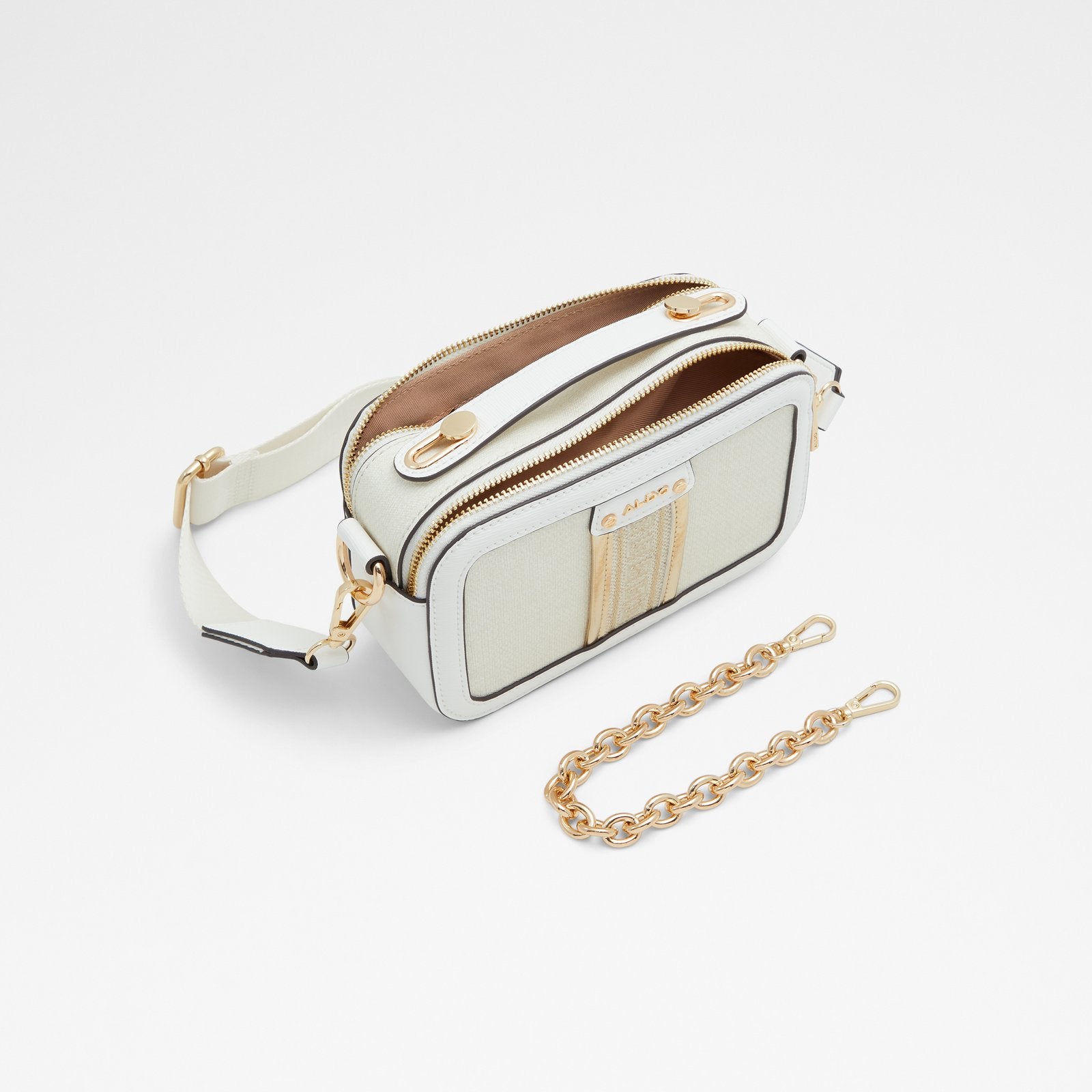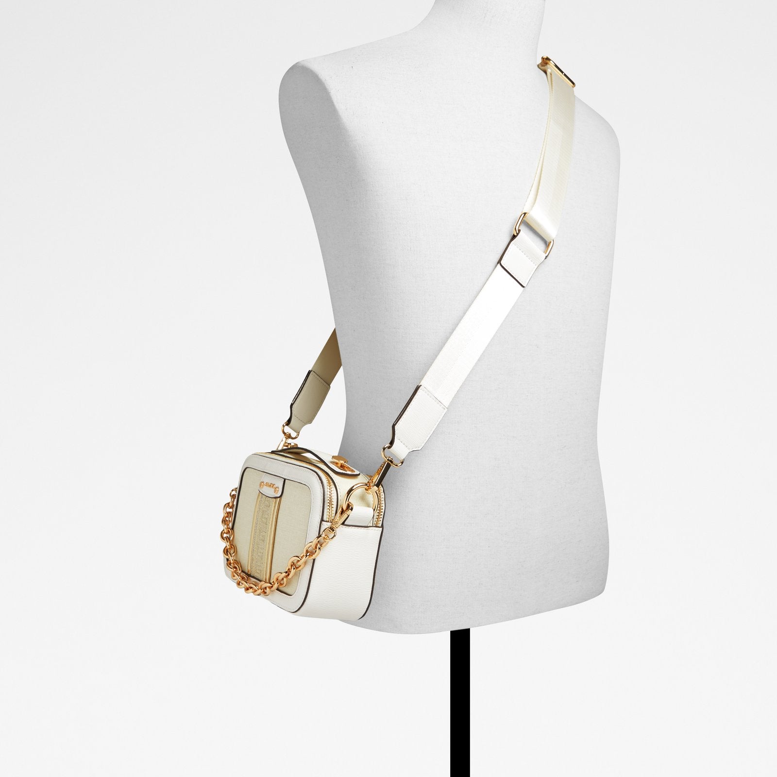 Our stunning white and gold crossbody with a monogram finish and dual strap styling is the perfect posh update to your OOTD.