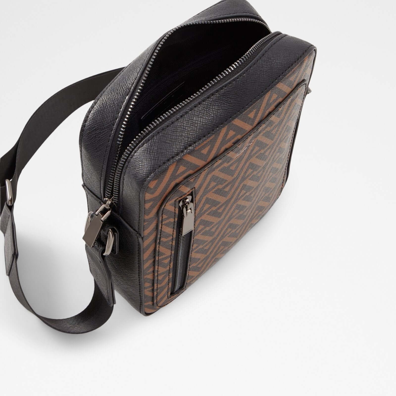 Mens crossbody with front zip pocket and back slash pocket detailing.