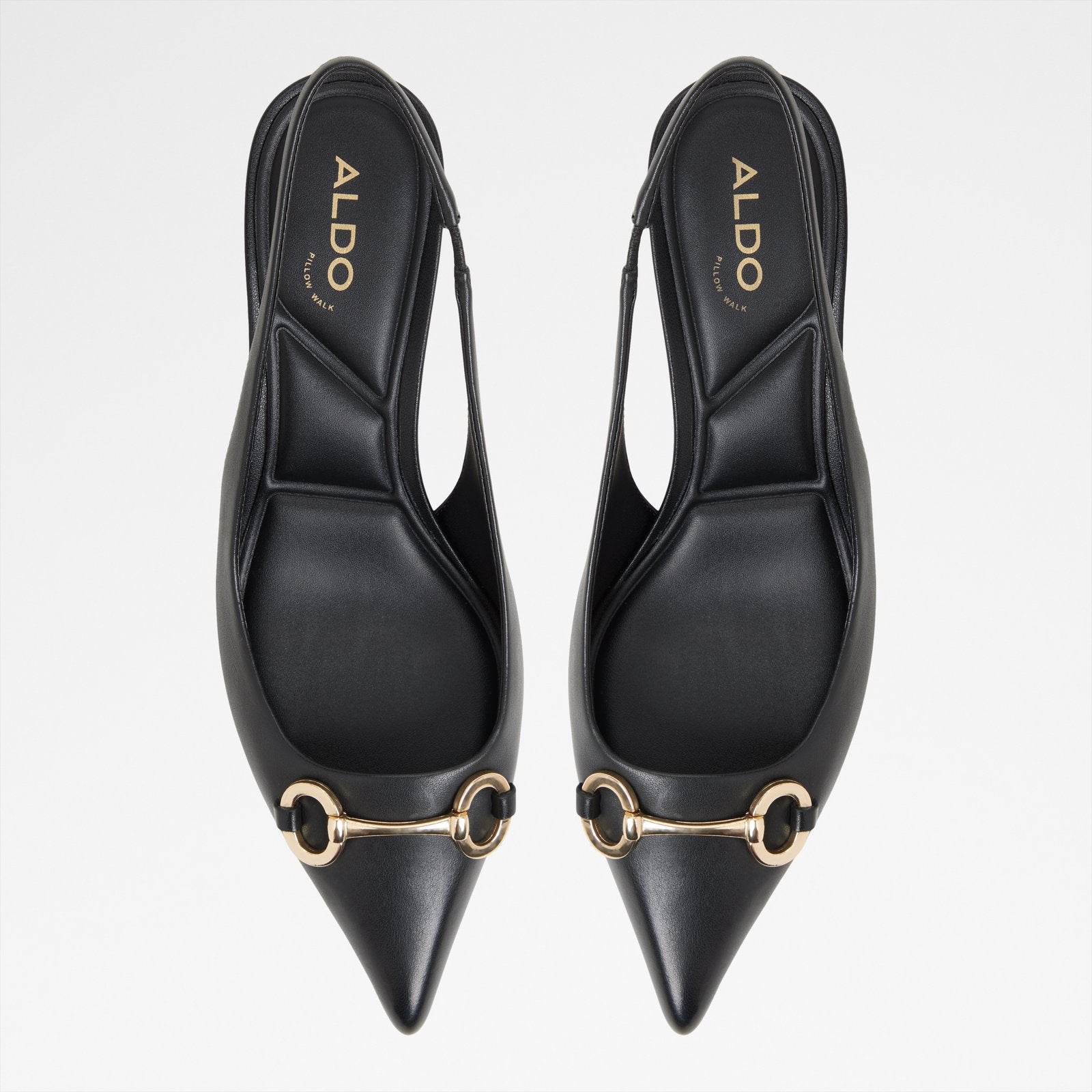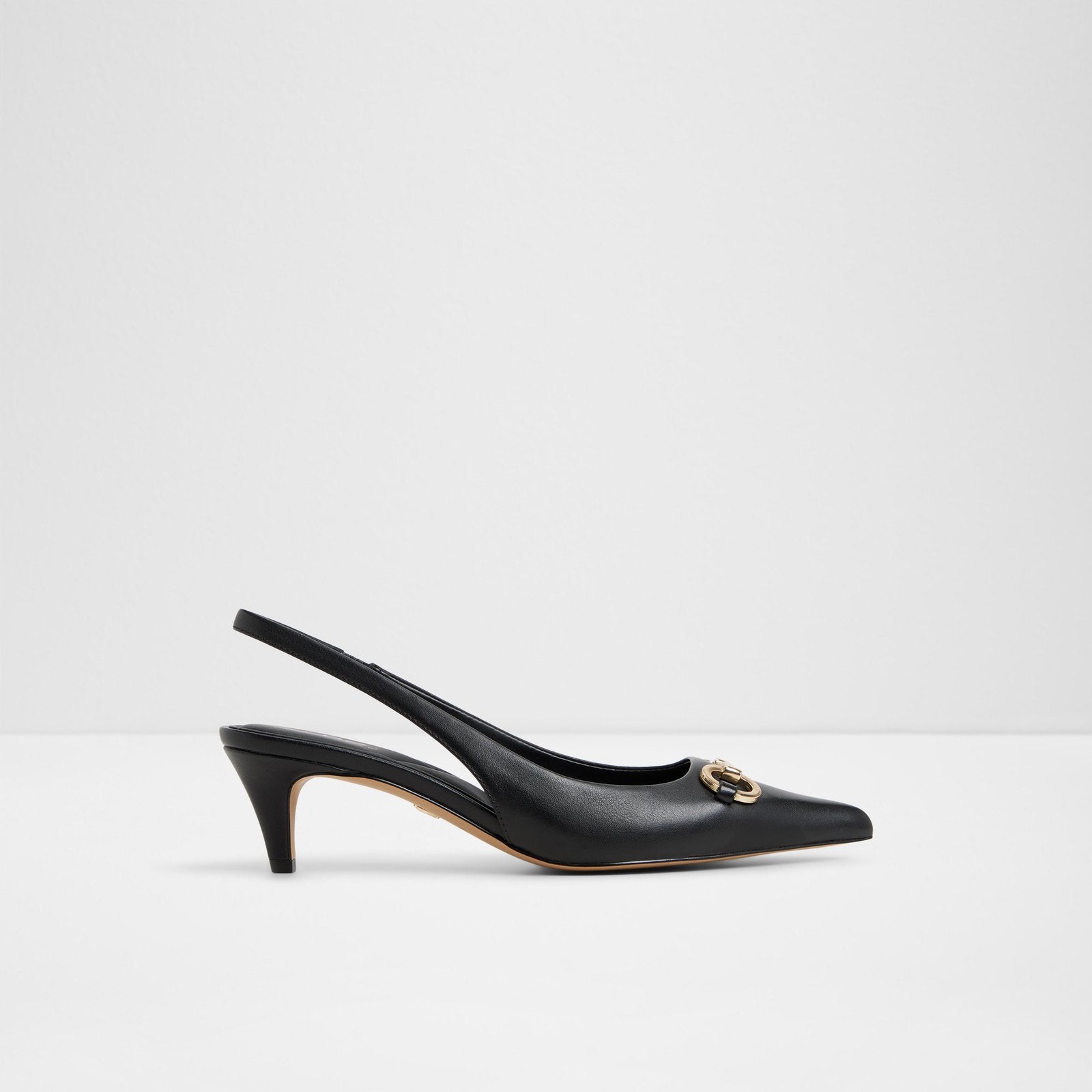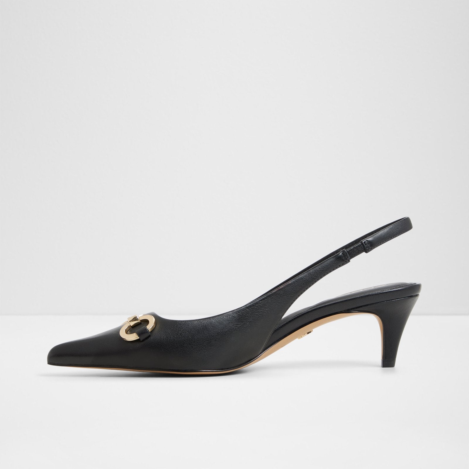 Add a touch of luxe to any outfit with this sleek pointy toe slingback, complete with a metal detail and walkable kitten heel.