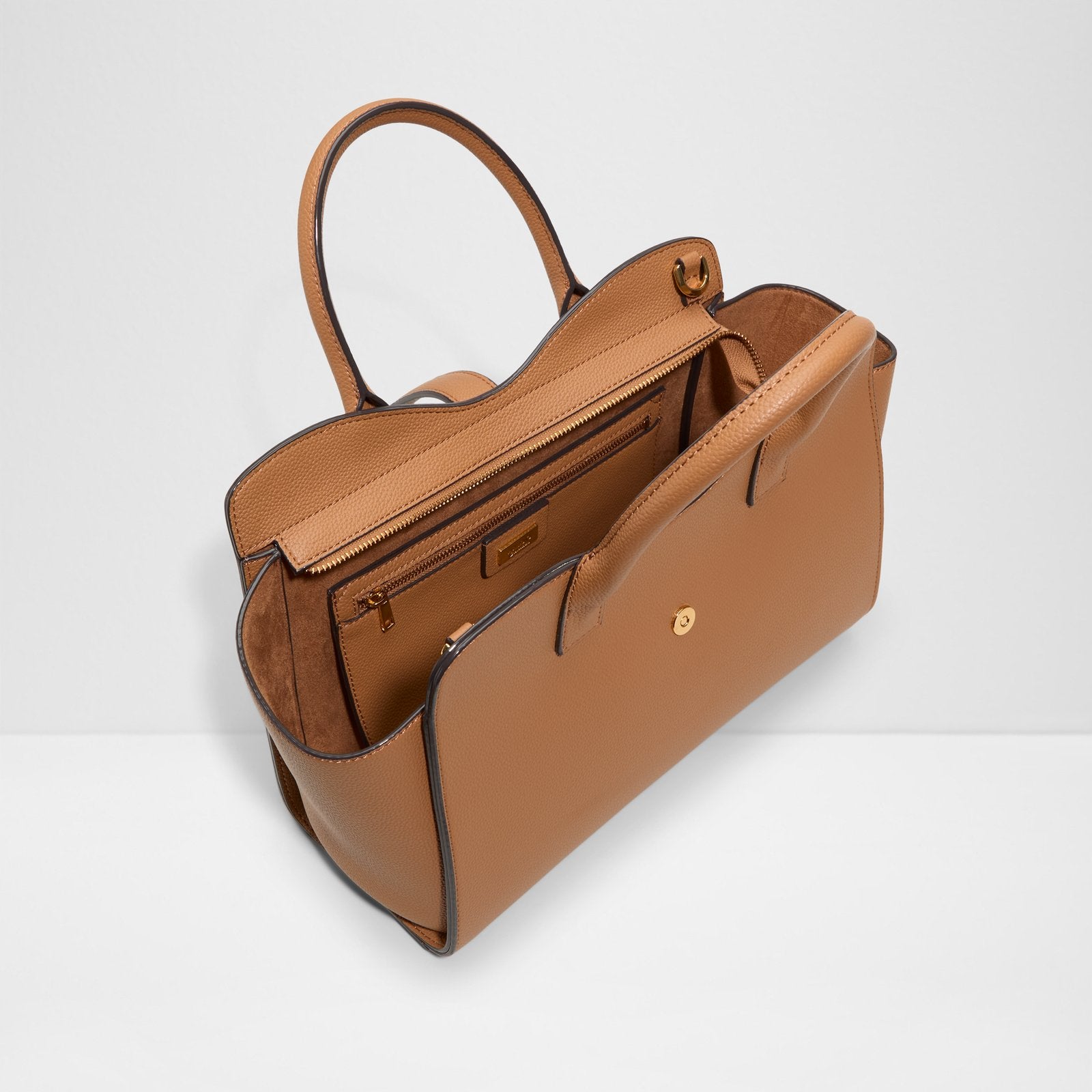Timeless and elegant, our women’s cognac satchel bag is accented with gold details, adding a touch of luxury to your everyday look. The perfect combination of classic style and modern sophistication.