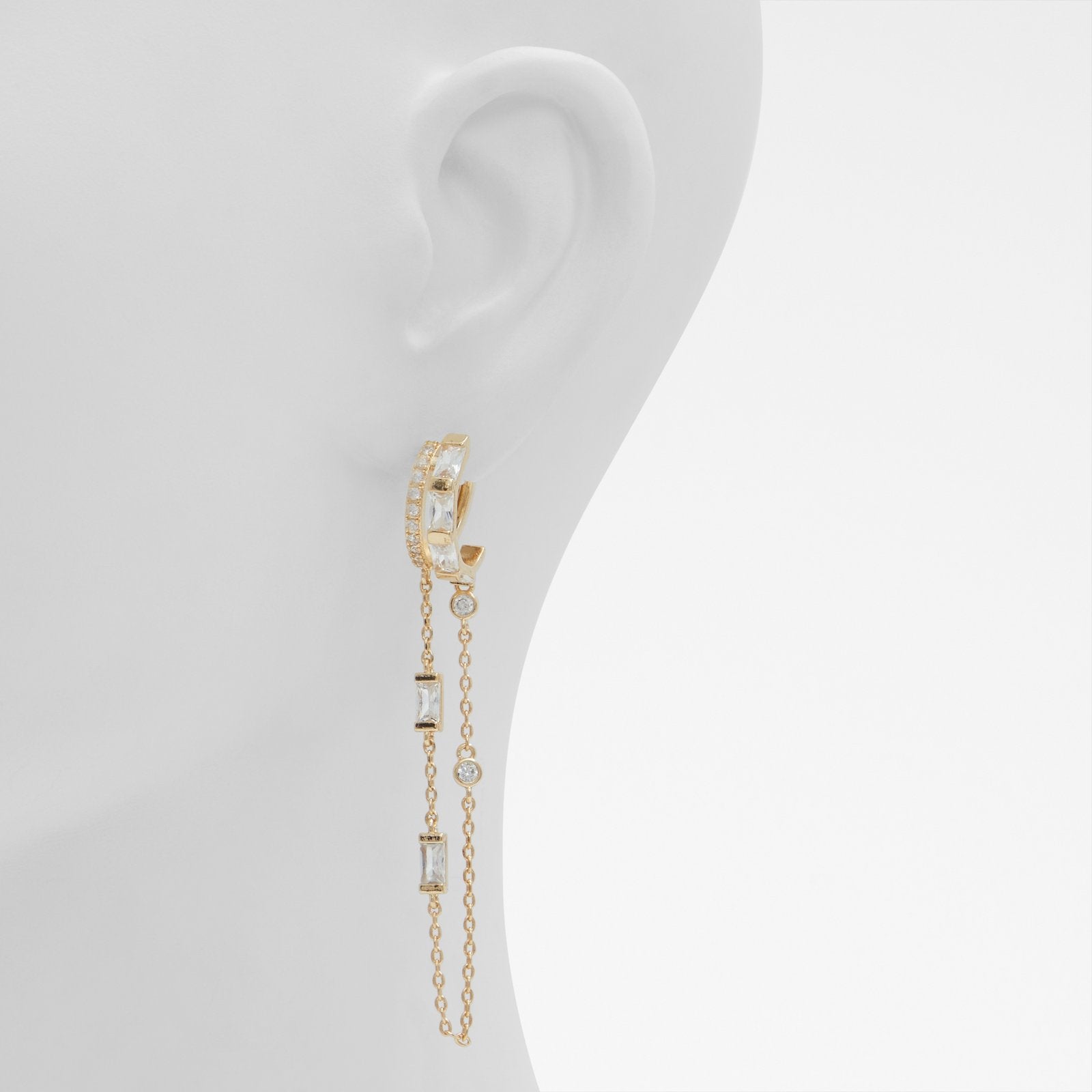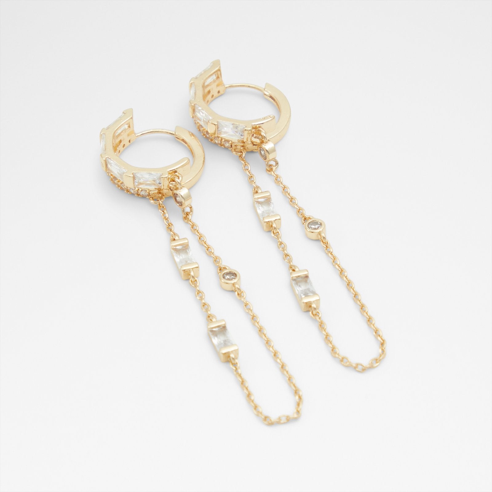 Chic gold hoop and dangling earrings, perfect for adding a touch of elegance to any outfit.