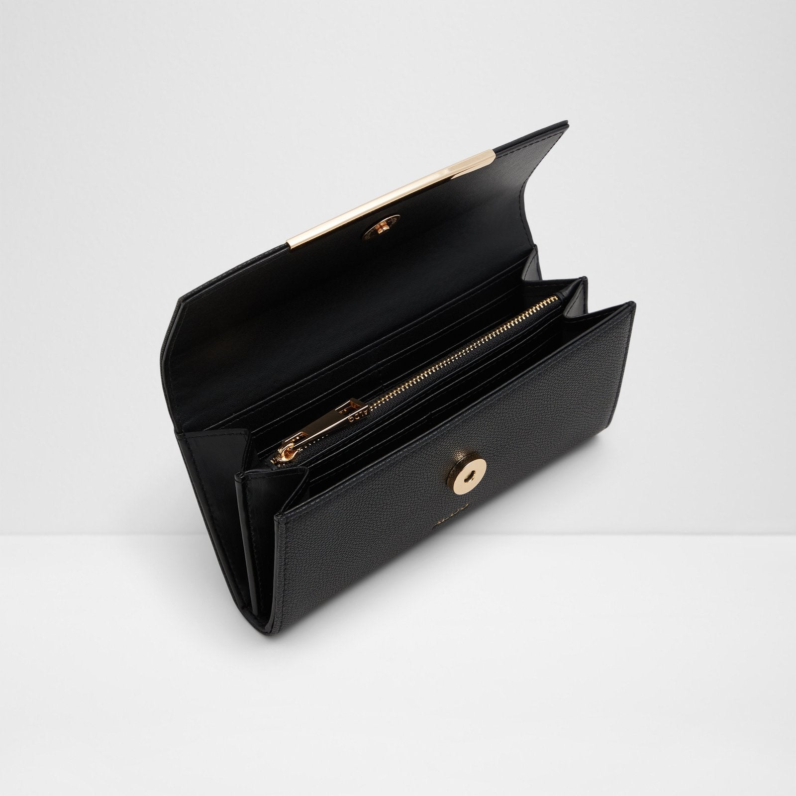 Your refined sense of style is what our Halamacyla top-zip wallet is all about. Timeless jet-black finish with gold-tone hardware and a multi-pocket interior keeping you totally organized.