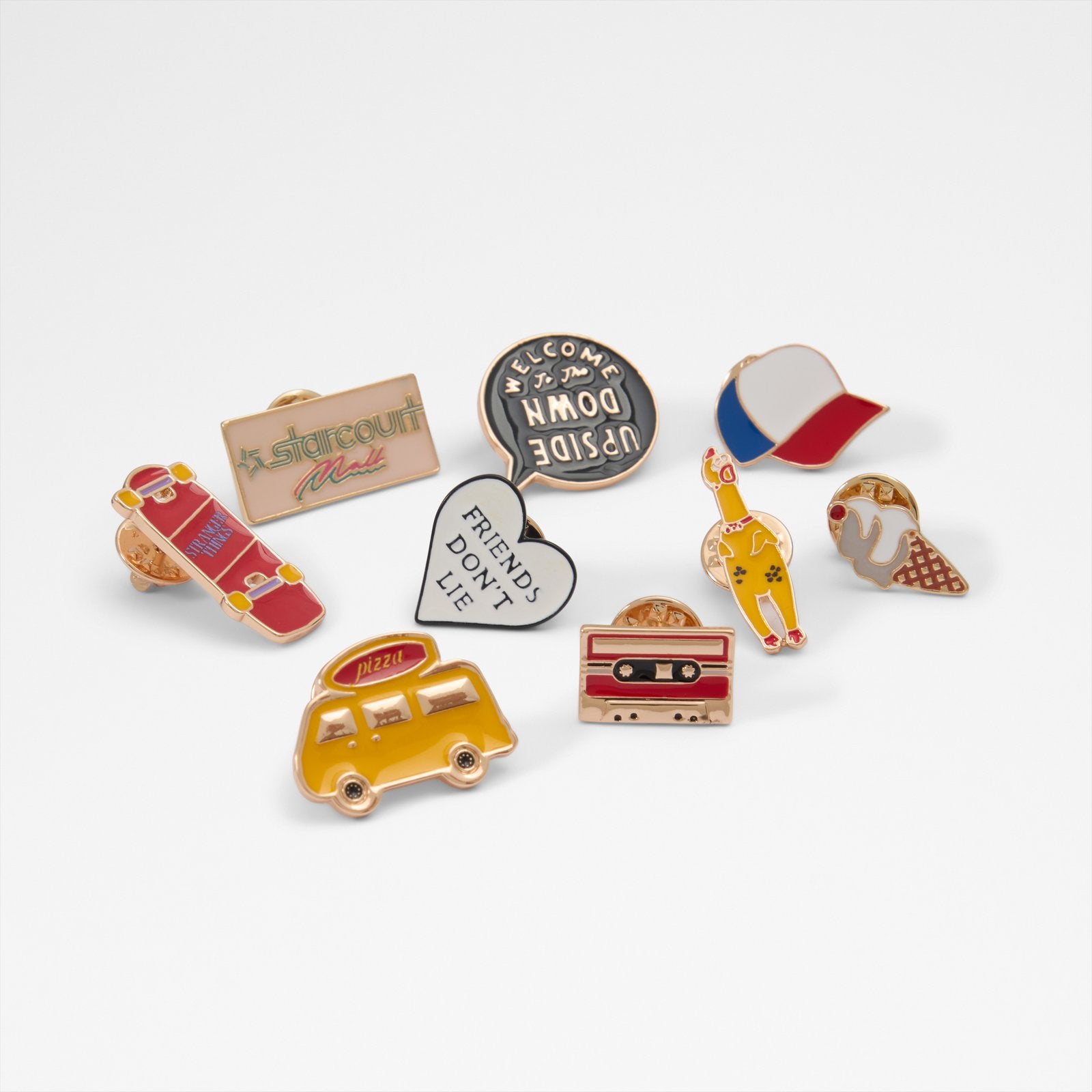 This versatile collection of limited-edition Stranger Things x ALDO pins adds retro flair to your sleeves, jackets, bags, or hats. Featuring the 10 most out of this world symbols from the canon, this series is the most metal ever.