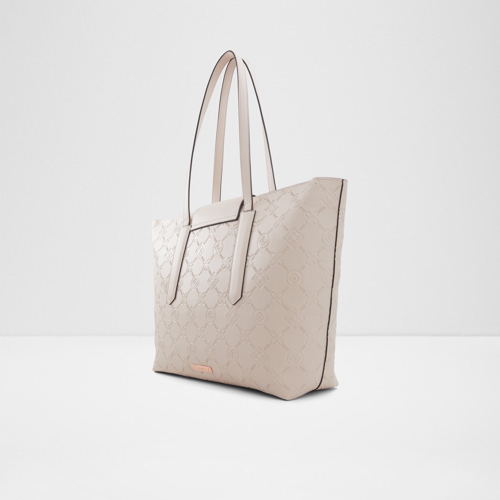 Ladies extra large soft tote with metal hardware detailing and flap closure.
