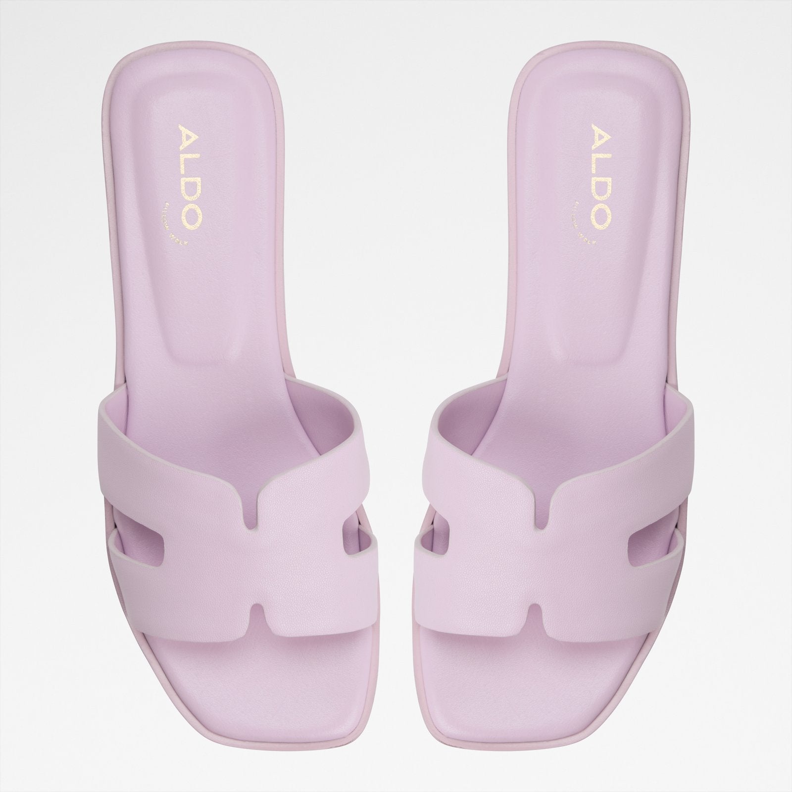 Soft tones, sleek lines. This light purple slide keeps it cool with an open square toe and effortless slip-on style.