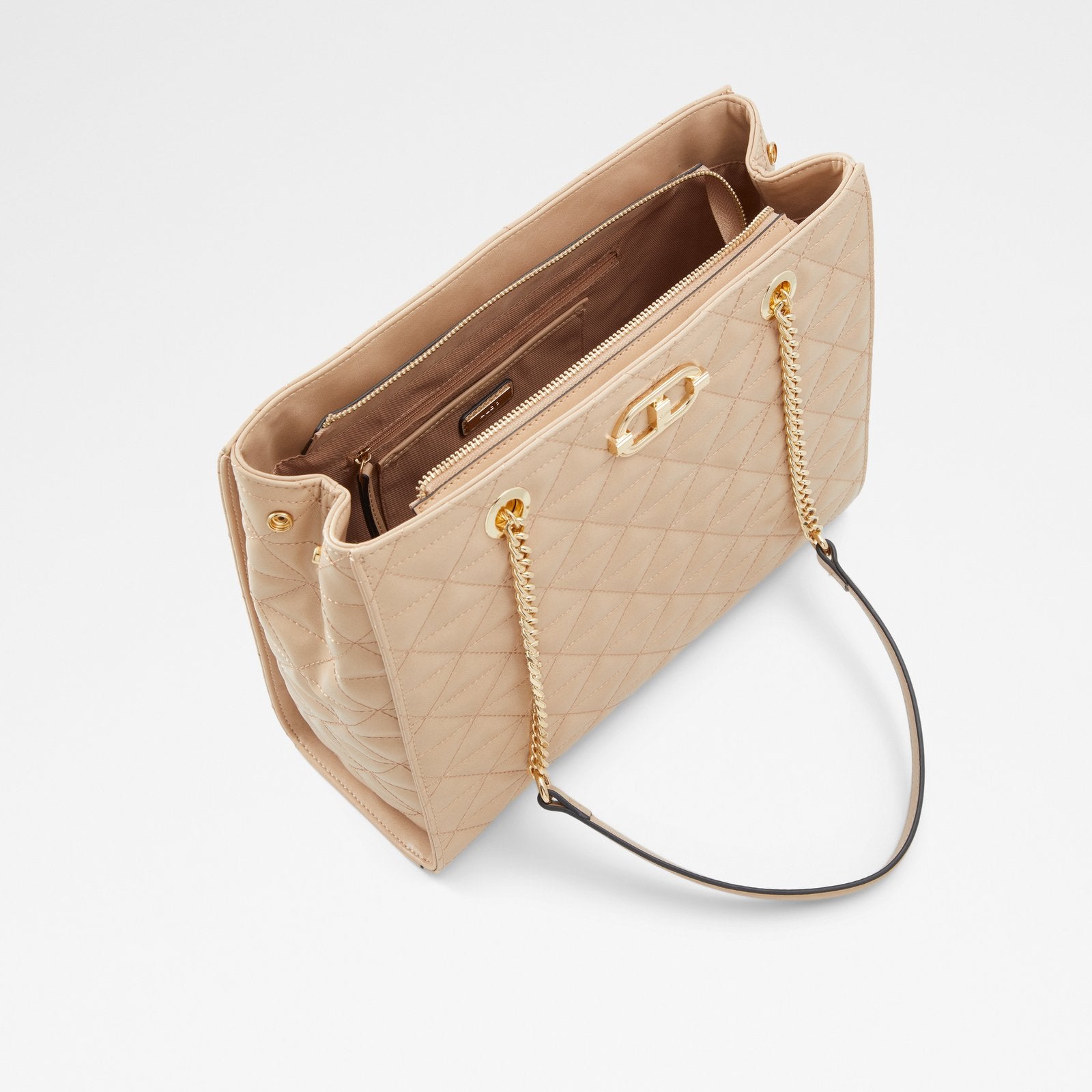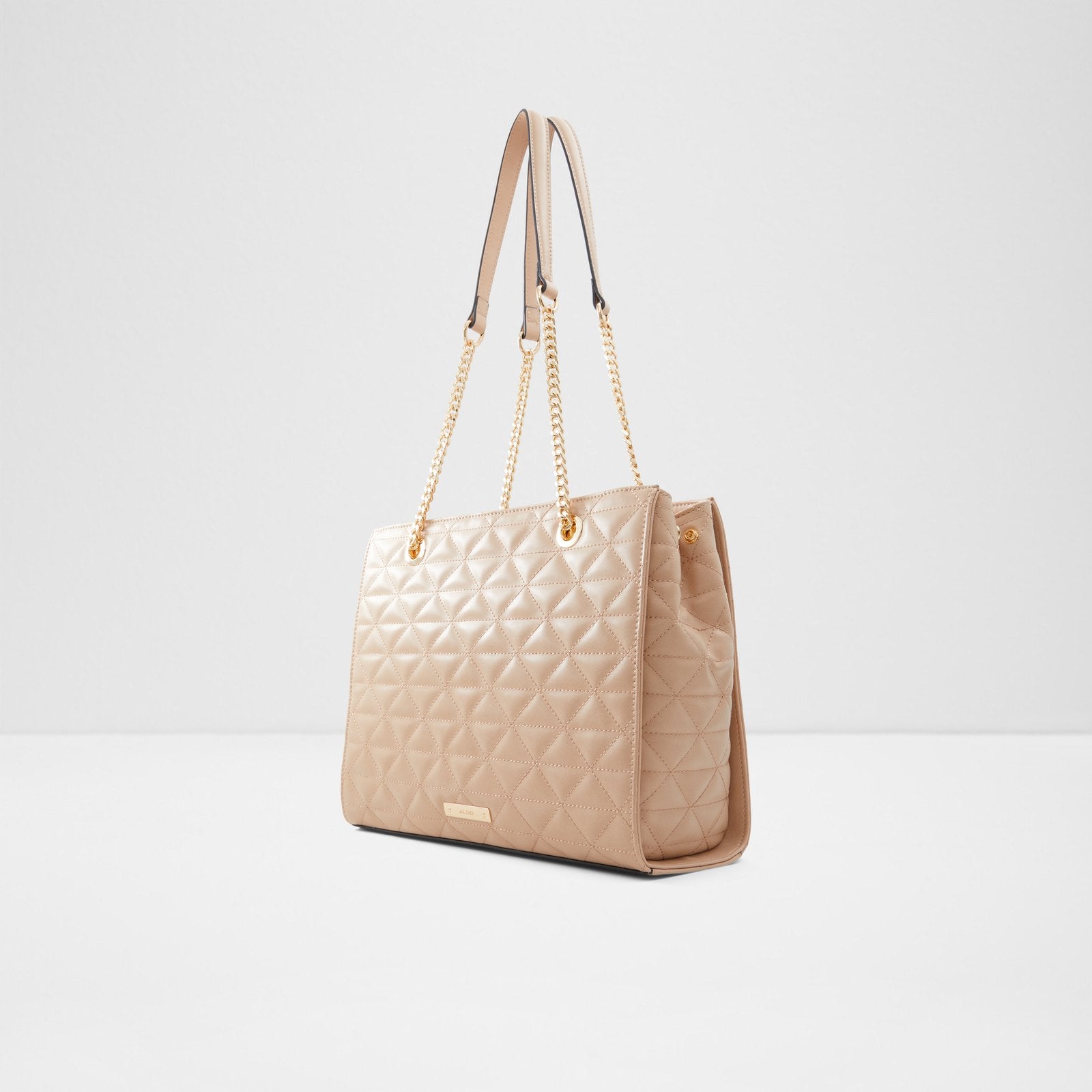 Ladies small quilting tote with gromments and metal detailing.