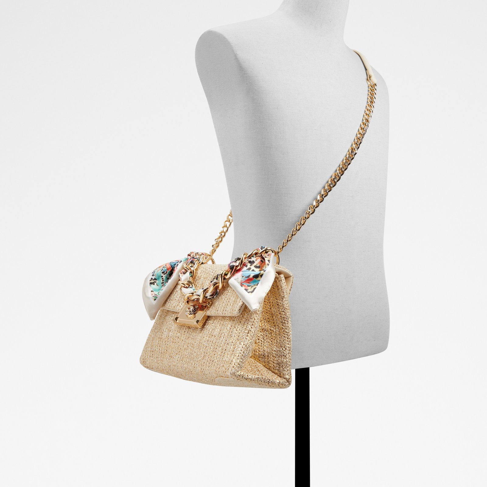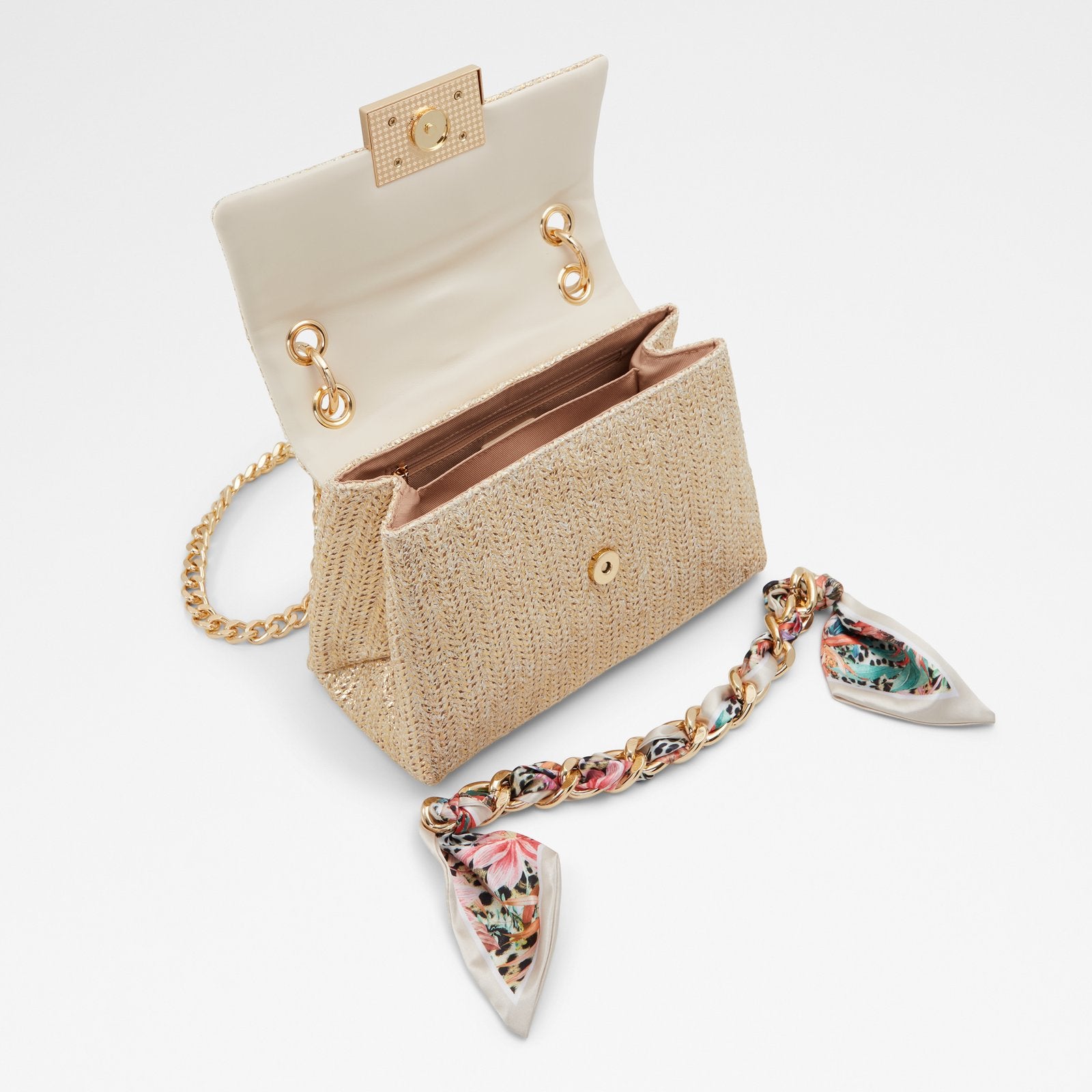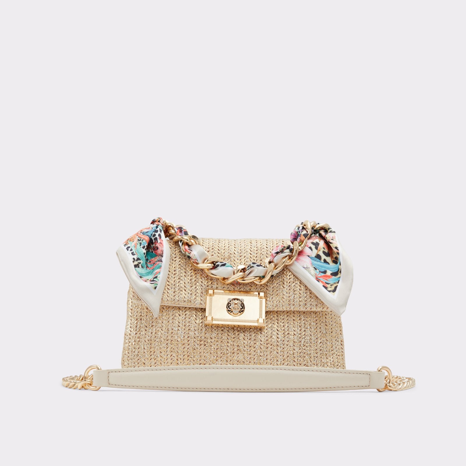 Chasing a fresh take on the typical crossbody? Check out our dreamy Jermeystraw in a natural textile finish. Gold-tone hardware and luxe scarf attachment keep this look classic but with a bit of a twist.