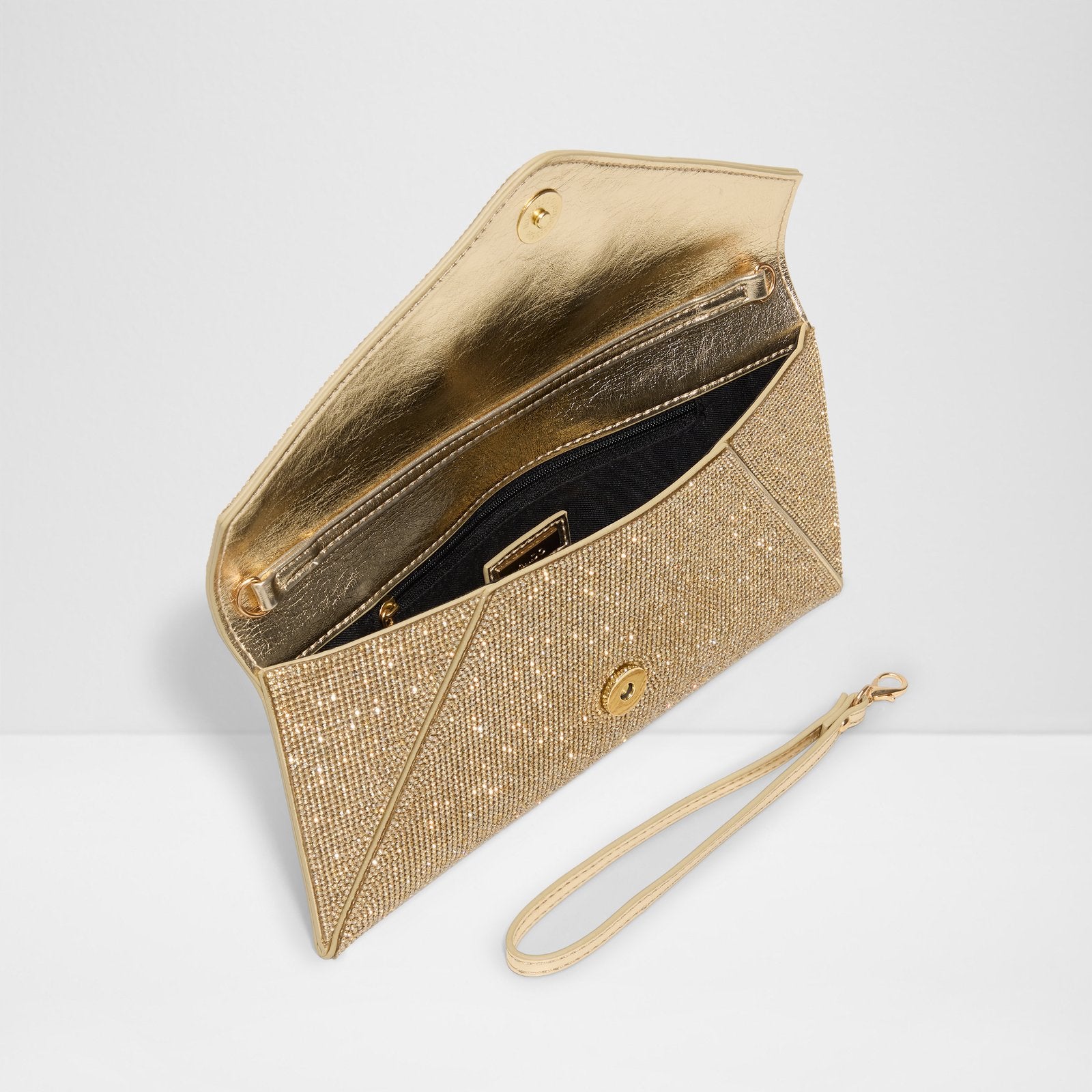 This rhinestone-covered clutch deserves the spotlight, while an optional chain strap makes it versatile.