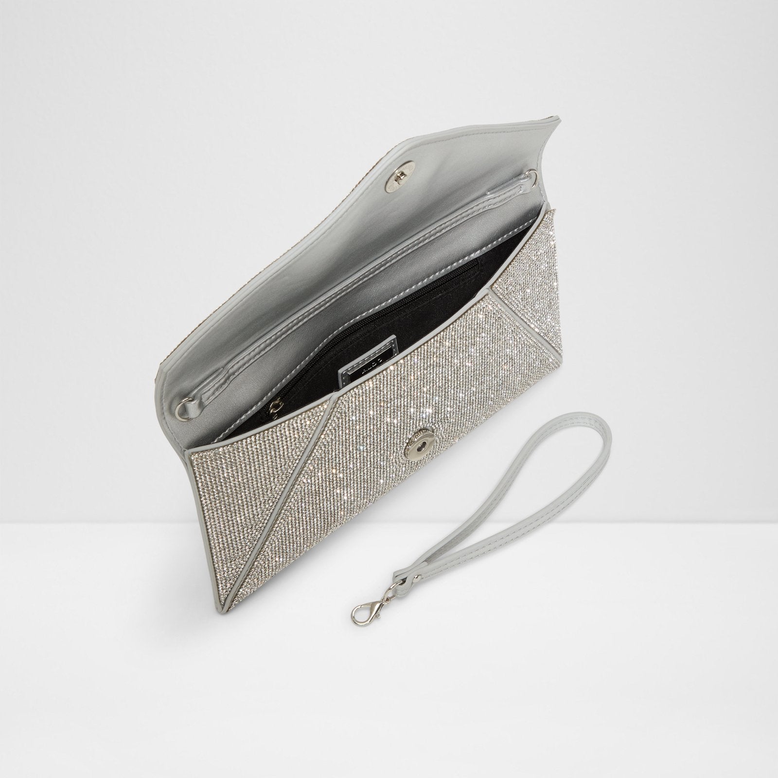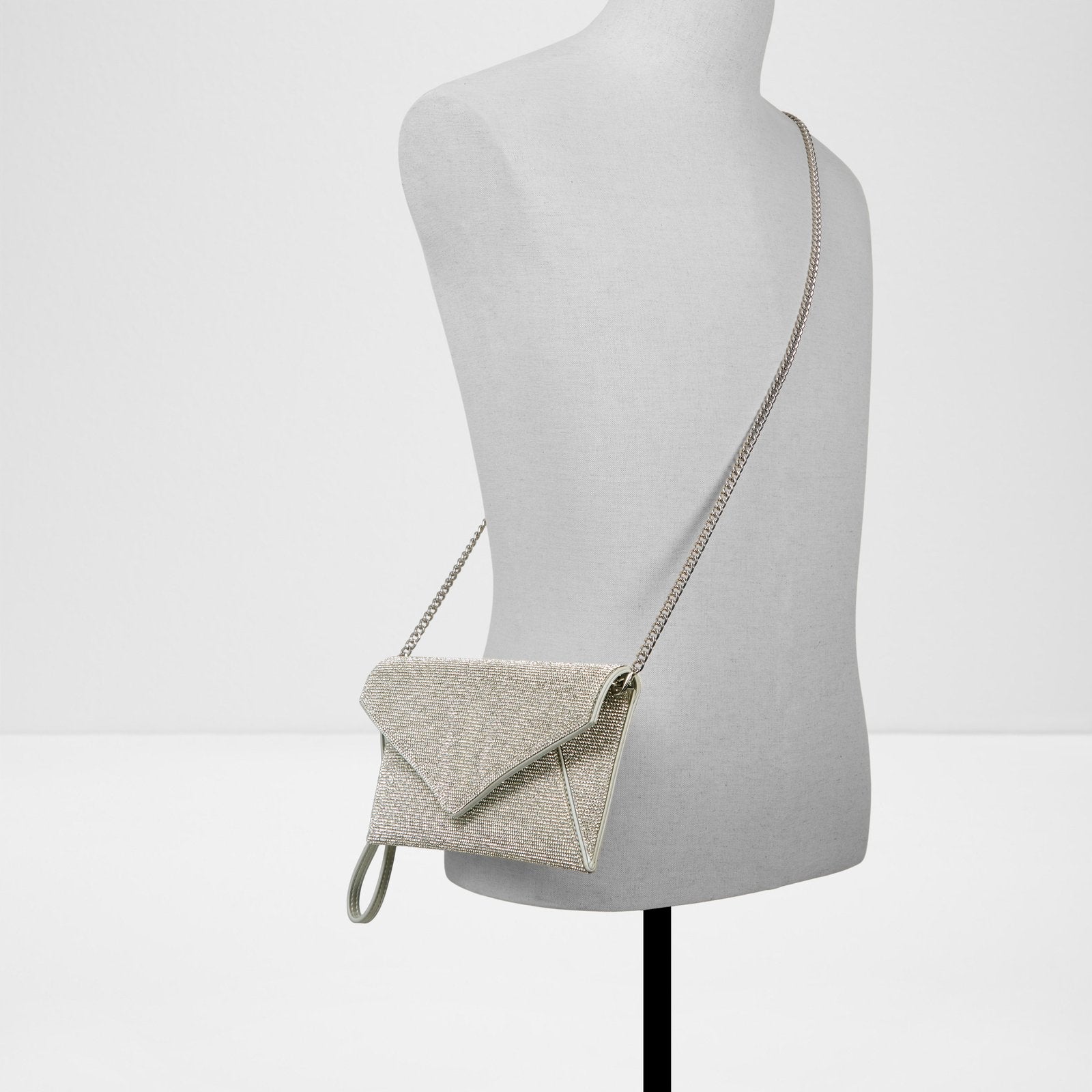 This rhinestone-covered clutch deserves the spotlight, while an optional chain strap makes it versatile.