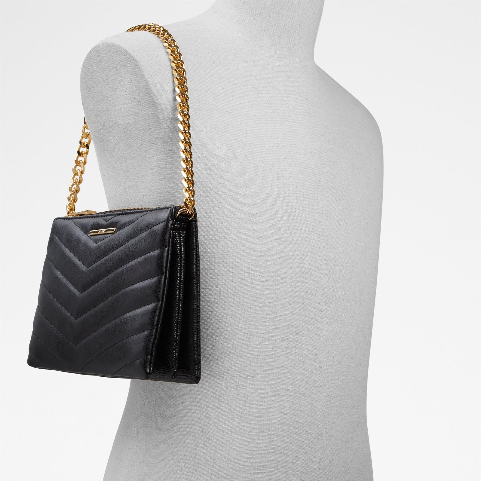 Subtle chevron quilting adds visual interest to this simple yet glam design, while the top zip closure and eye-catching gold hardware details score some style points.