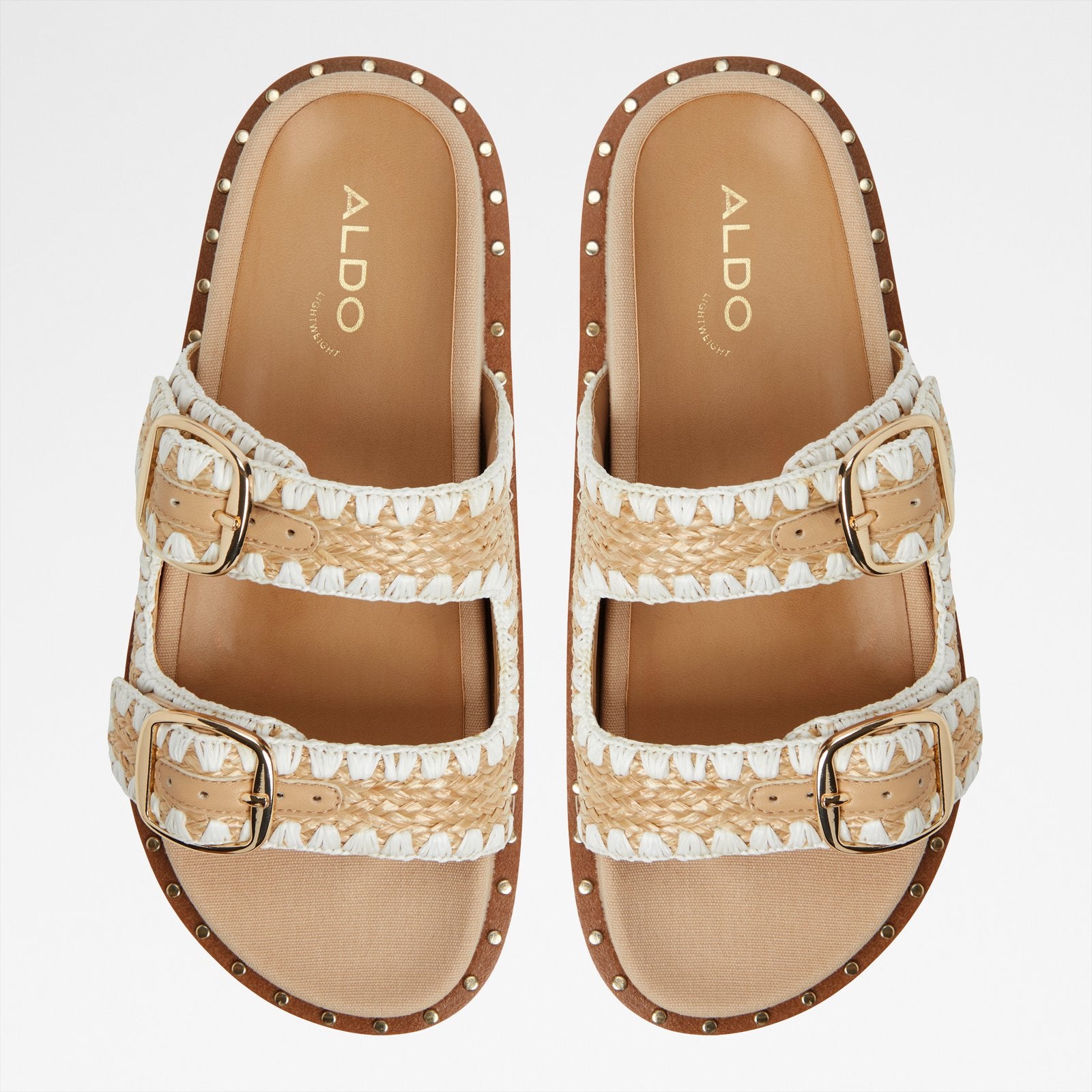 Woven double-strap sandals with adjustable buckles, studded trim, and a supportive footbed. A blend of style and comfort, perfect for effortless summer looks.