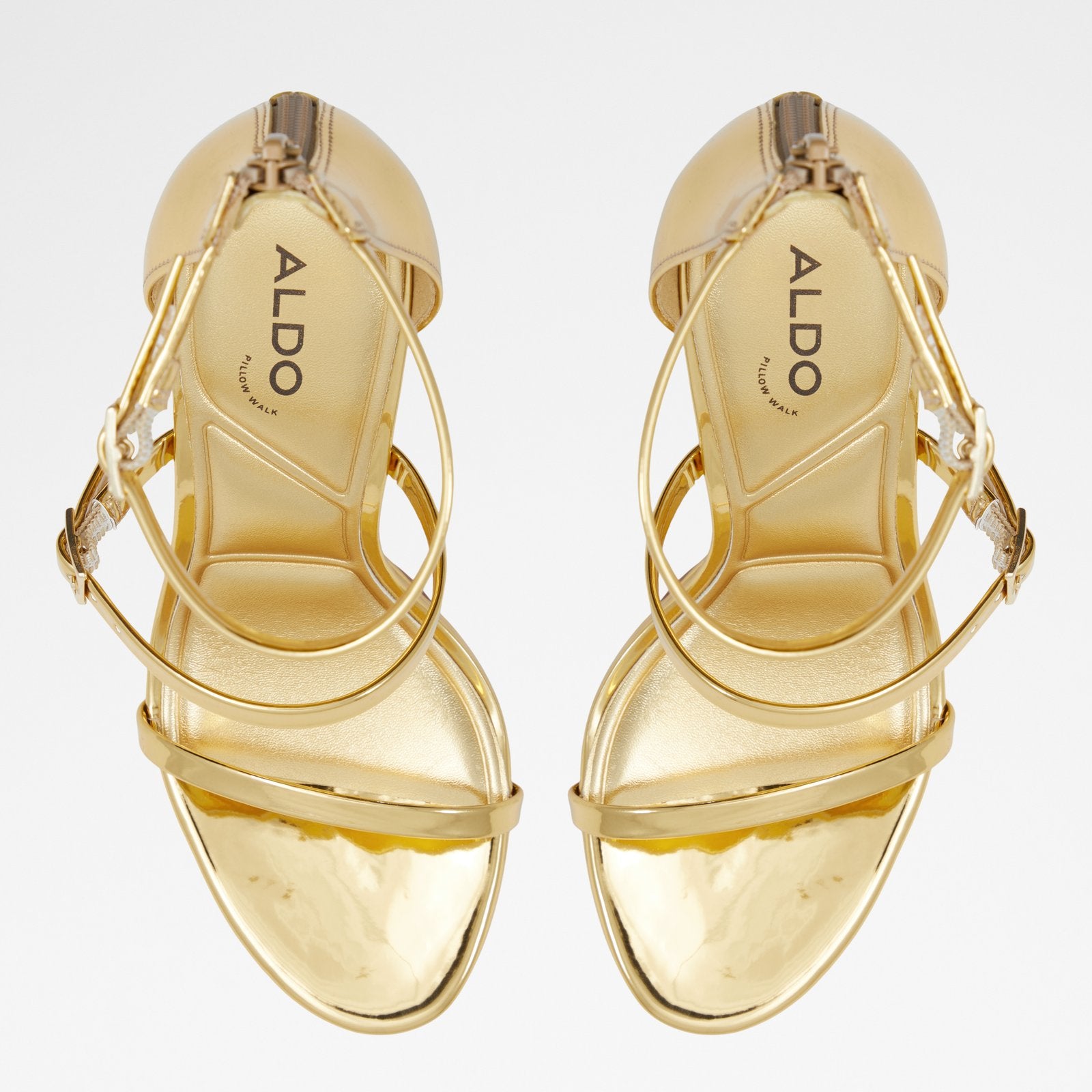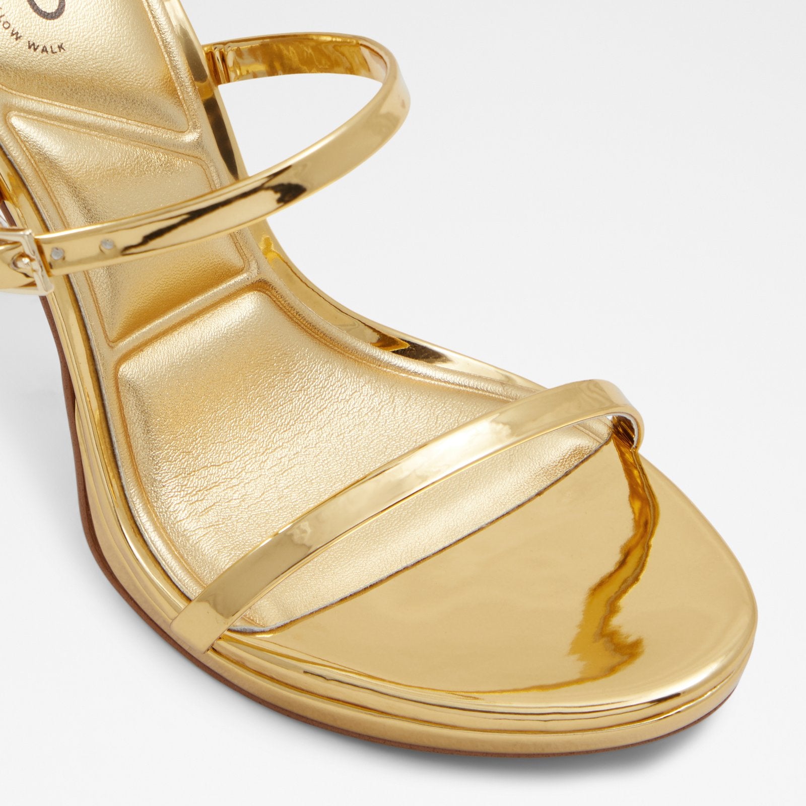 Strut your stuff in these sleek, strappy heels with adorable buckle details.
