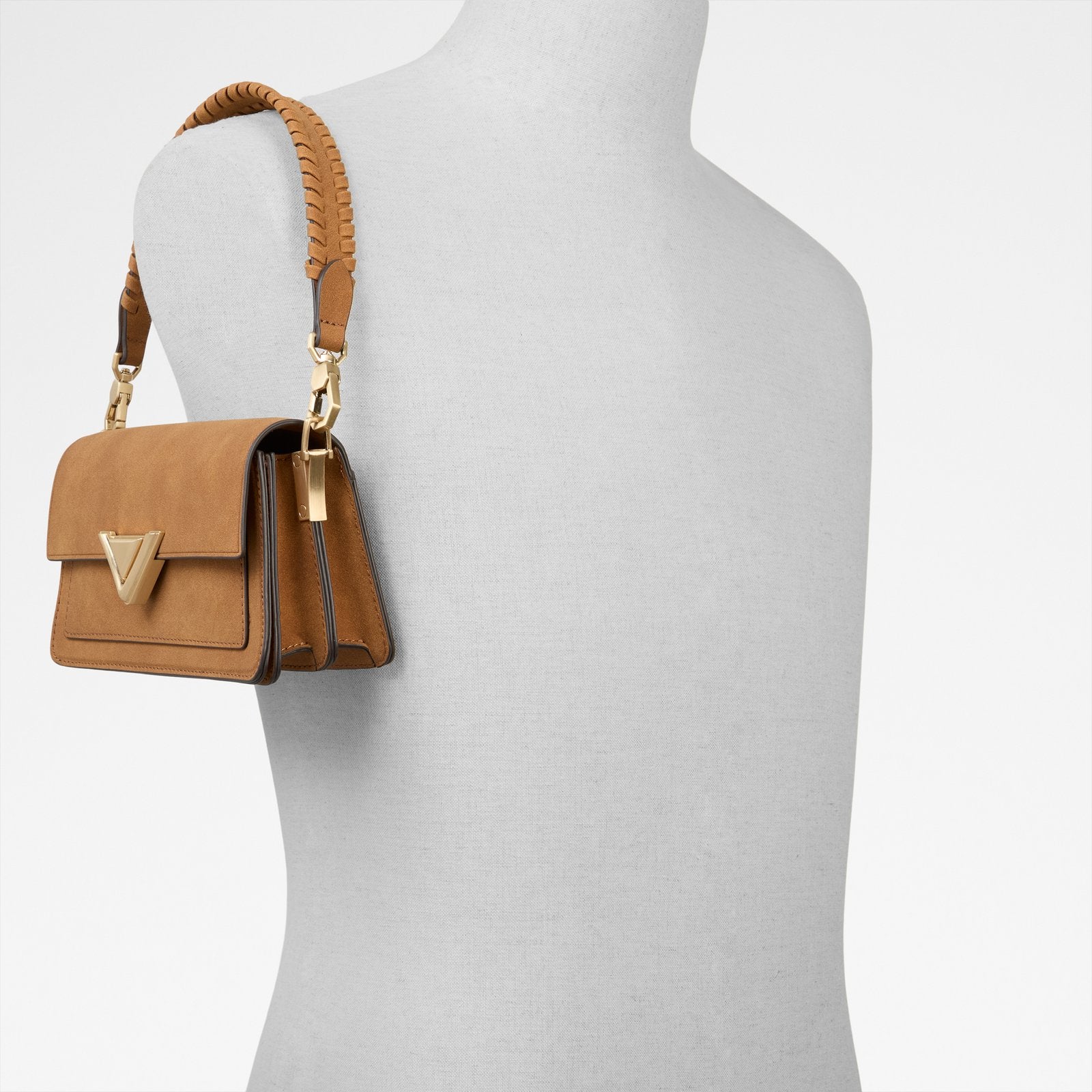 A chic twist on a classic, this streamlined shoulder bag gets an elevated edge courtesy of its textured handle and sleek metal closure.