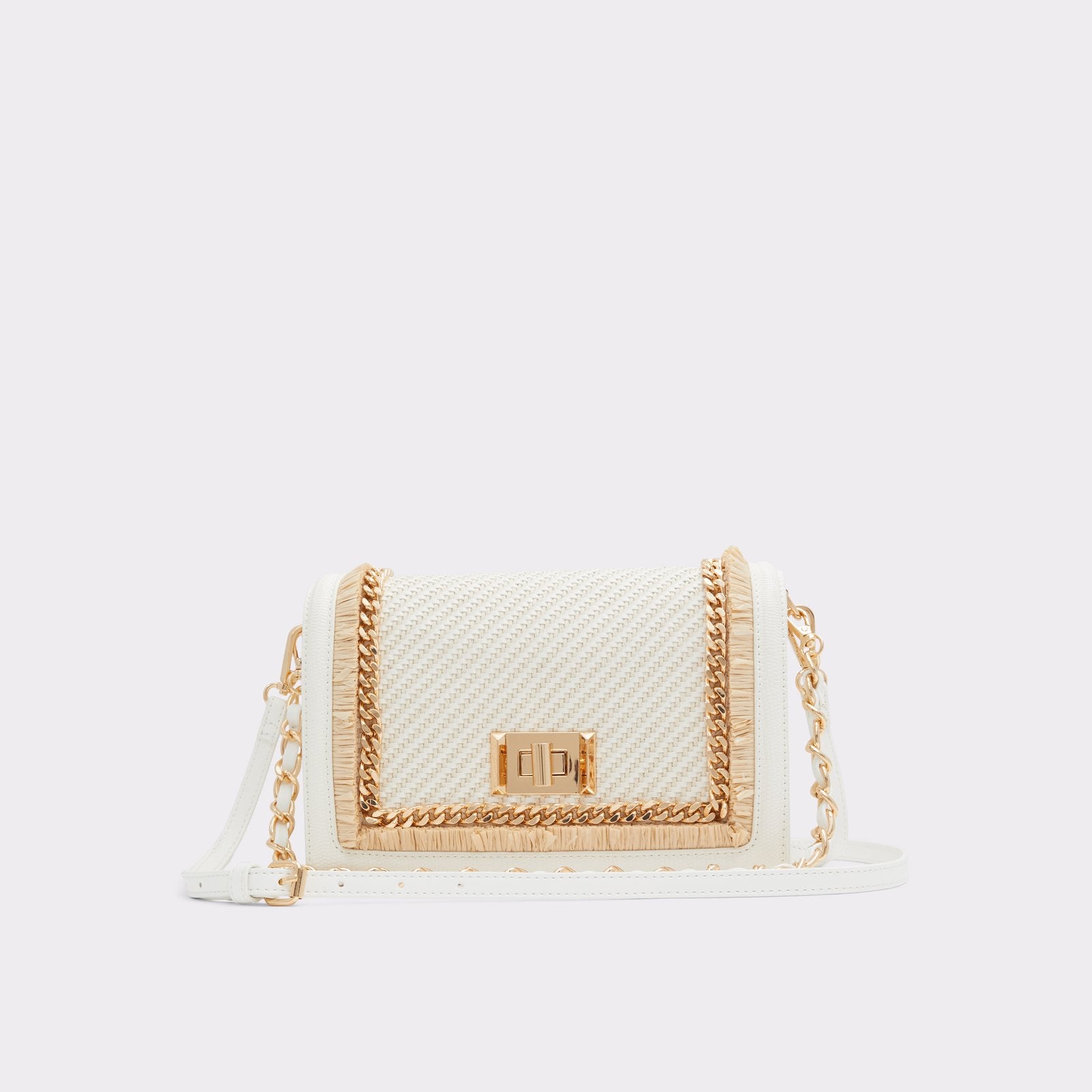 Perfectly posh describes our dreamy little Maffay crossbody. Fresh, bone-white/straw combo, gorgeous gold-tone strap and just enough room to stash your cash, cards and phone. We’re loving this look for you!