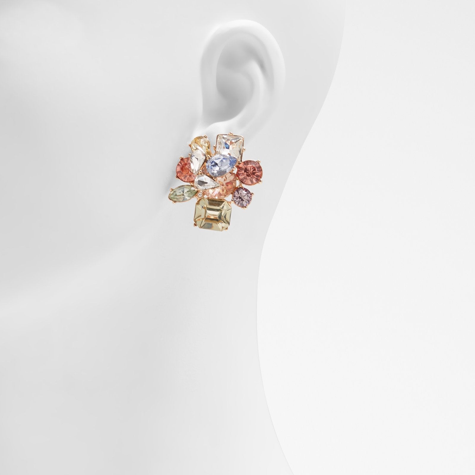 A button earring in truly beautiful set with splendid cut stones that are worth wearing your hair pulled back.