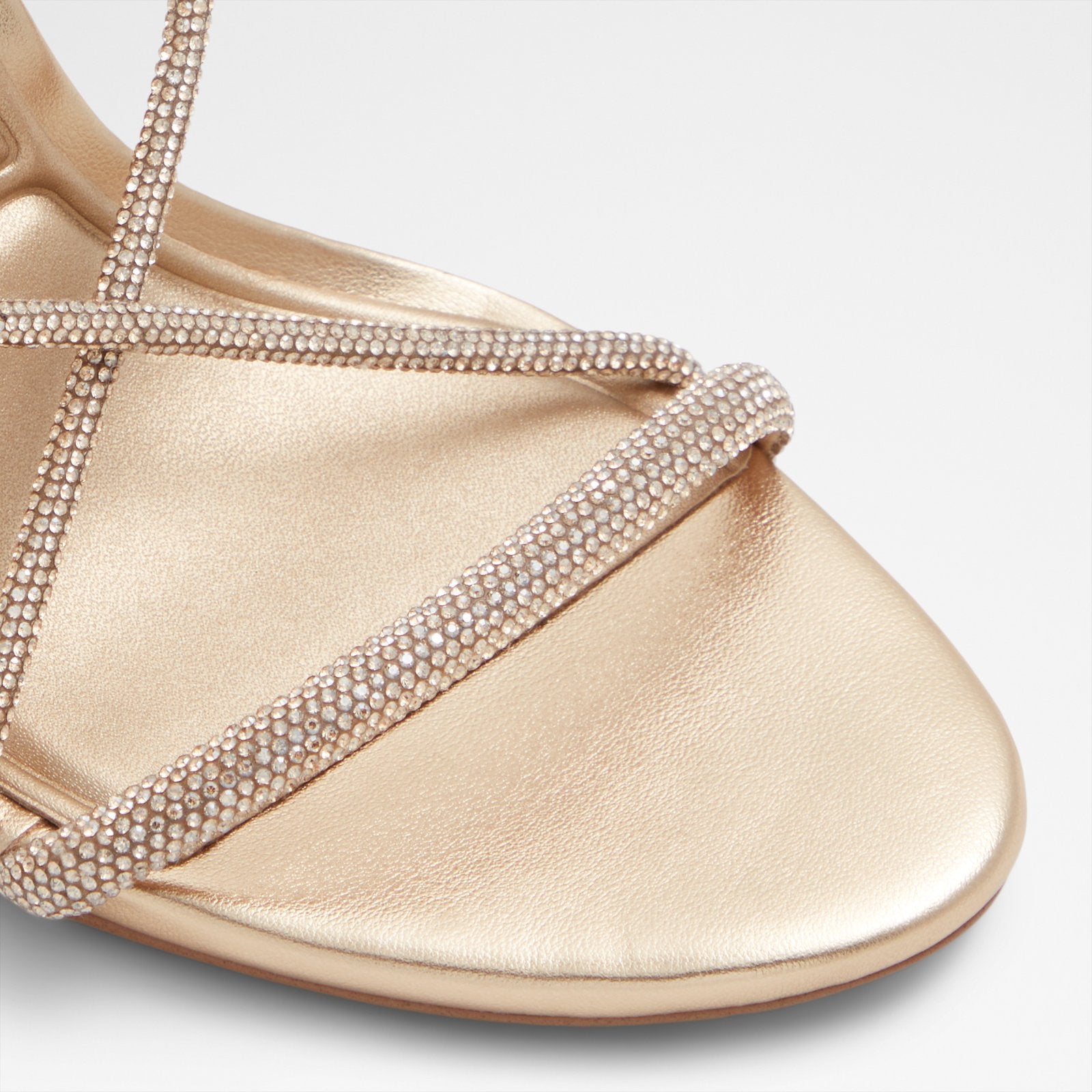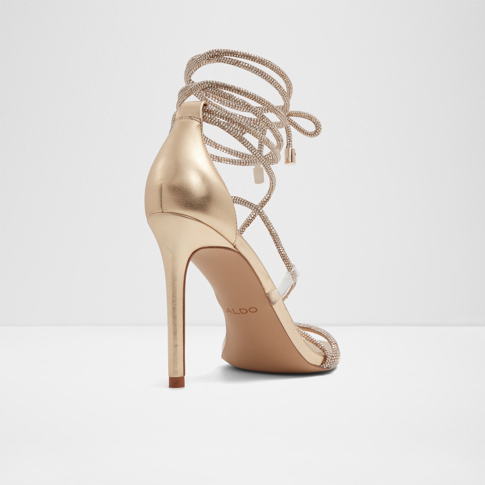 Sparkle and shine in these stunning party heels with glittery, ankle-climbing straps that are sure to take centre stage.