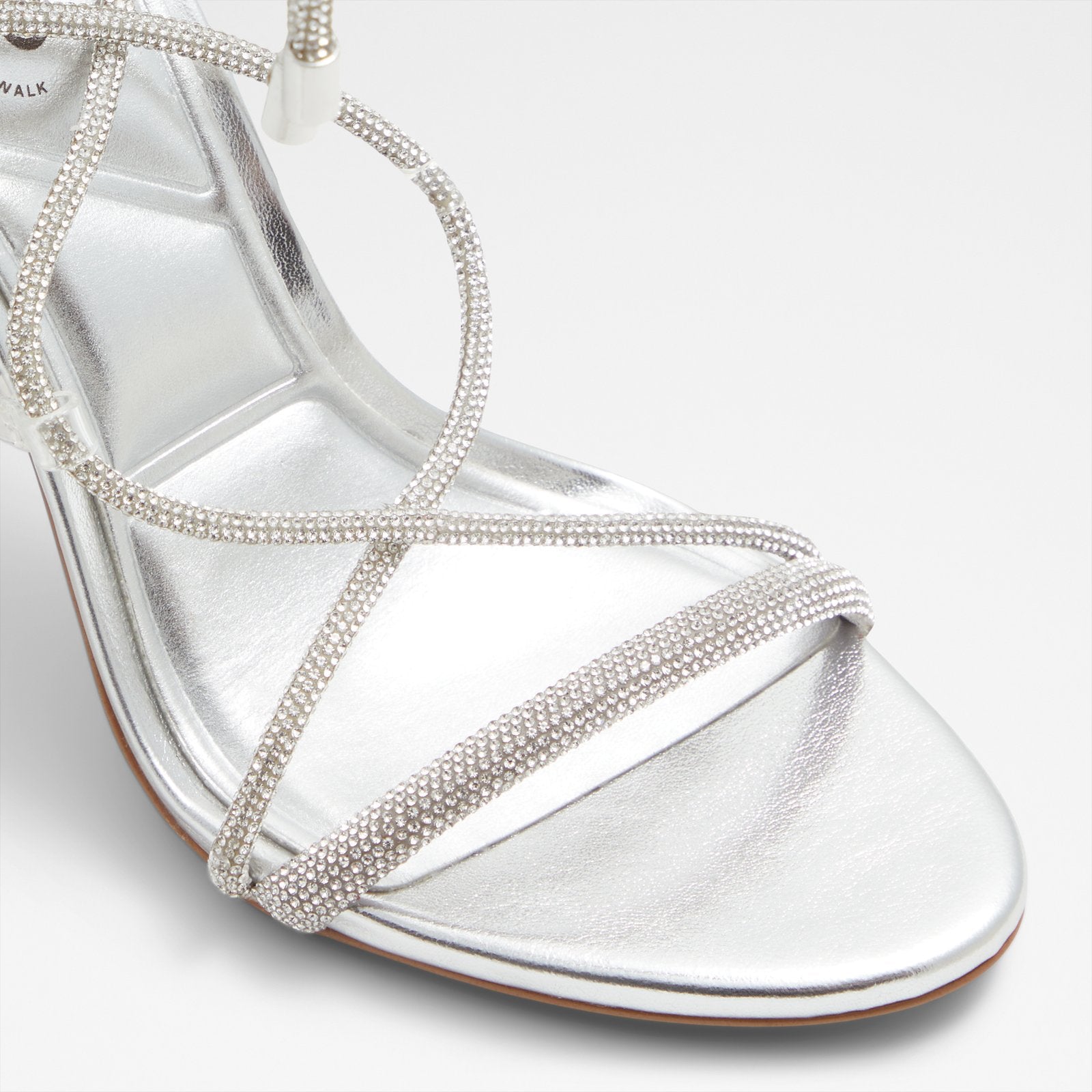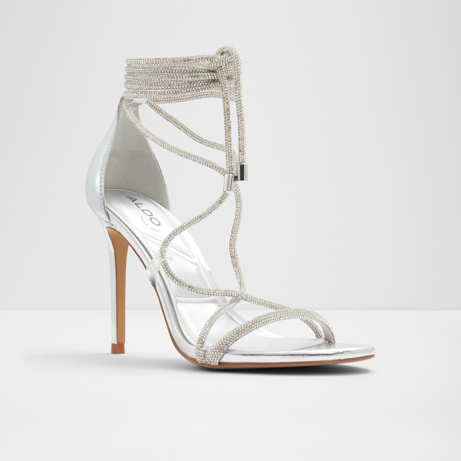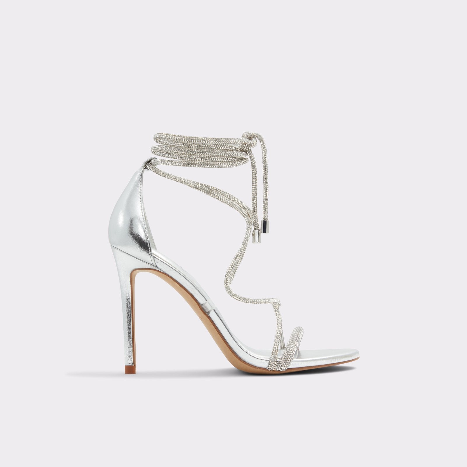 Sparkle and shine in these stunning party heels with glittery, ankle-climbing straps that are sure to take centre stage.