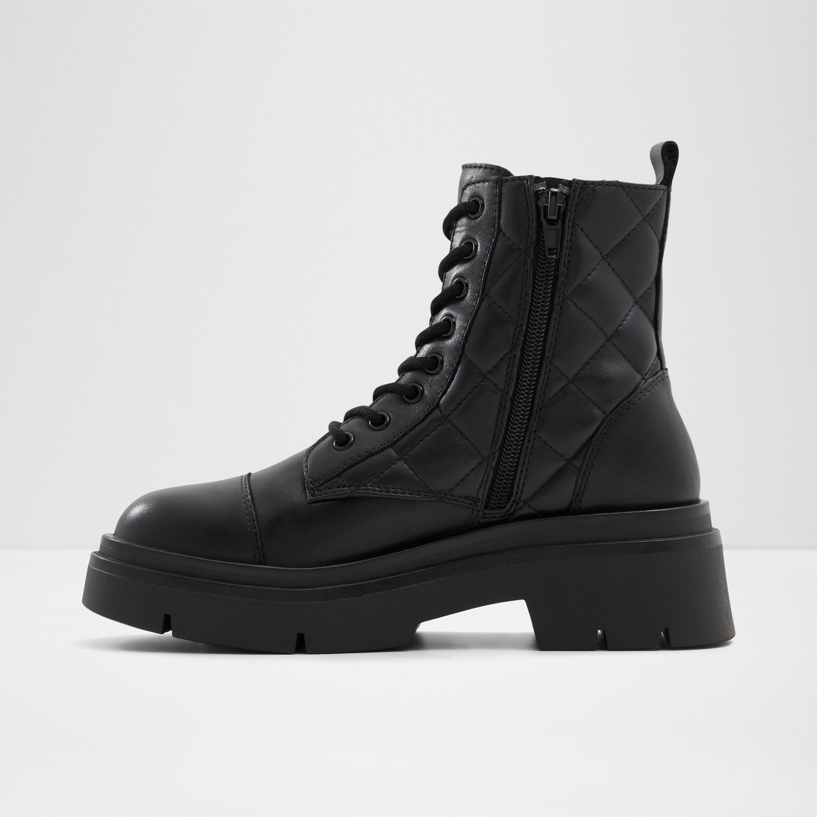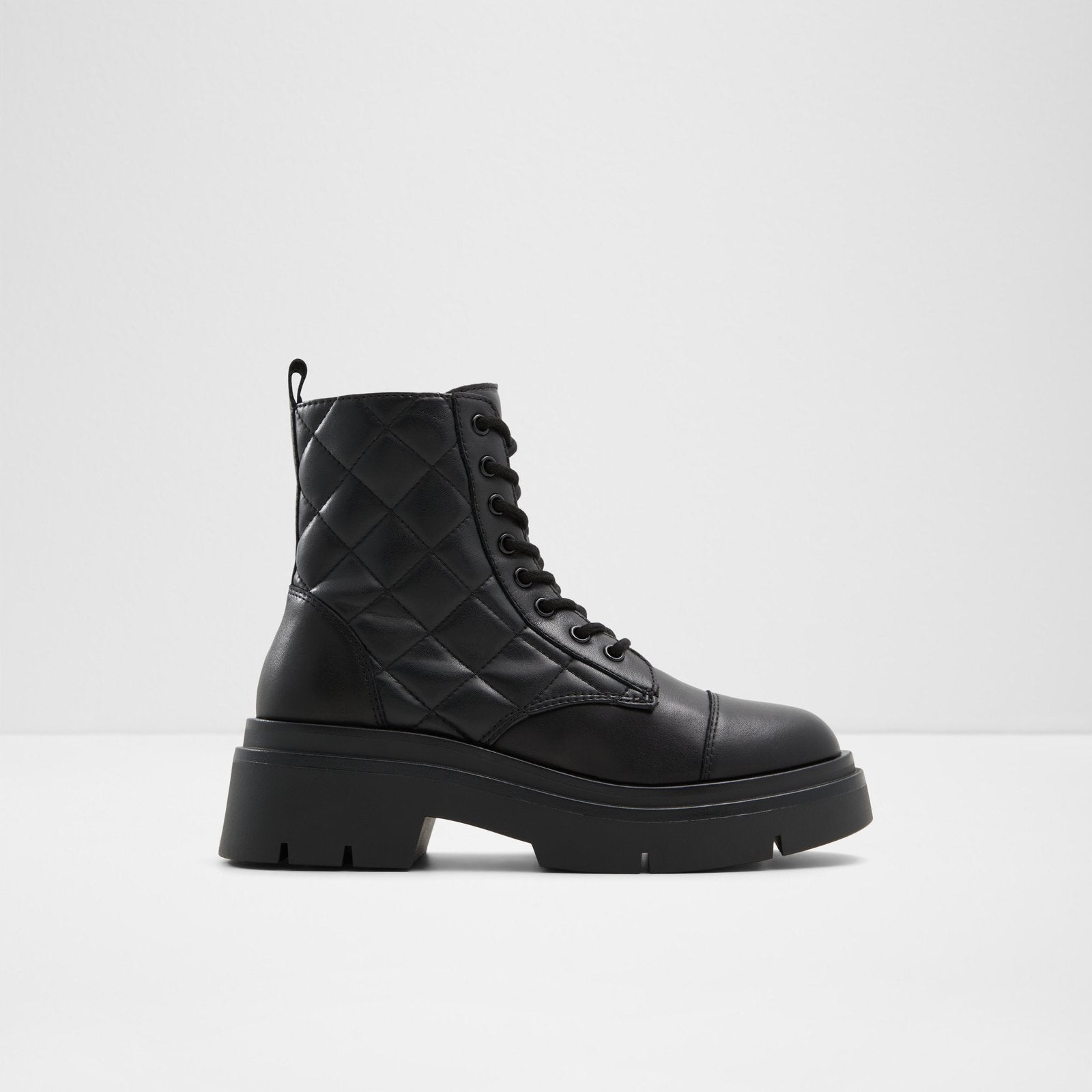 We’re loving this lightweight combat-style Marthia boot for you. Quilted jet-black upper and thick lug sole are so on-trend these days.
