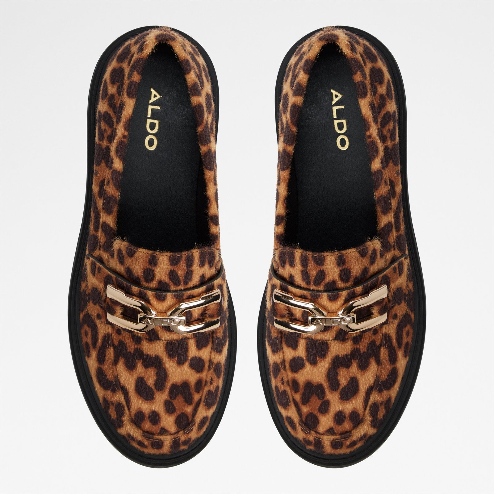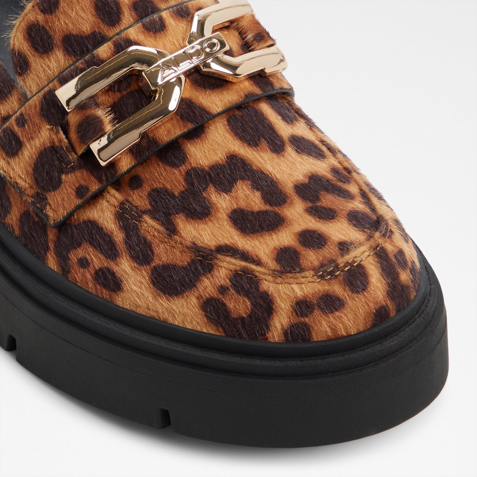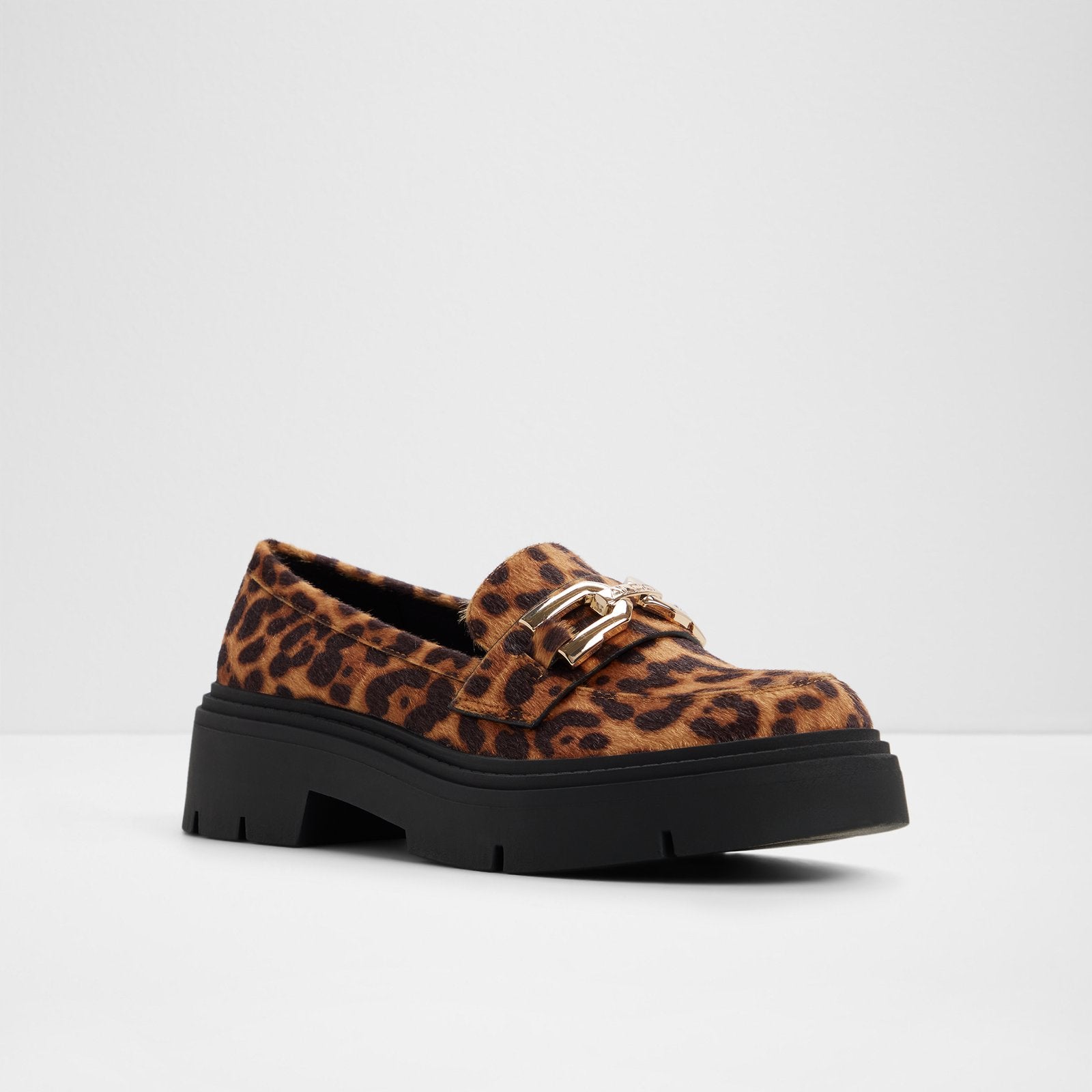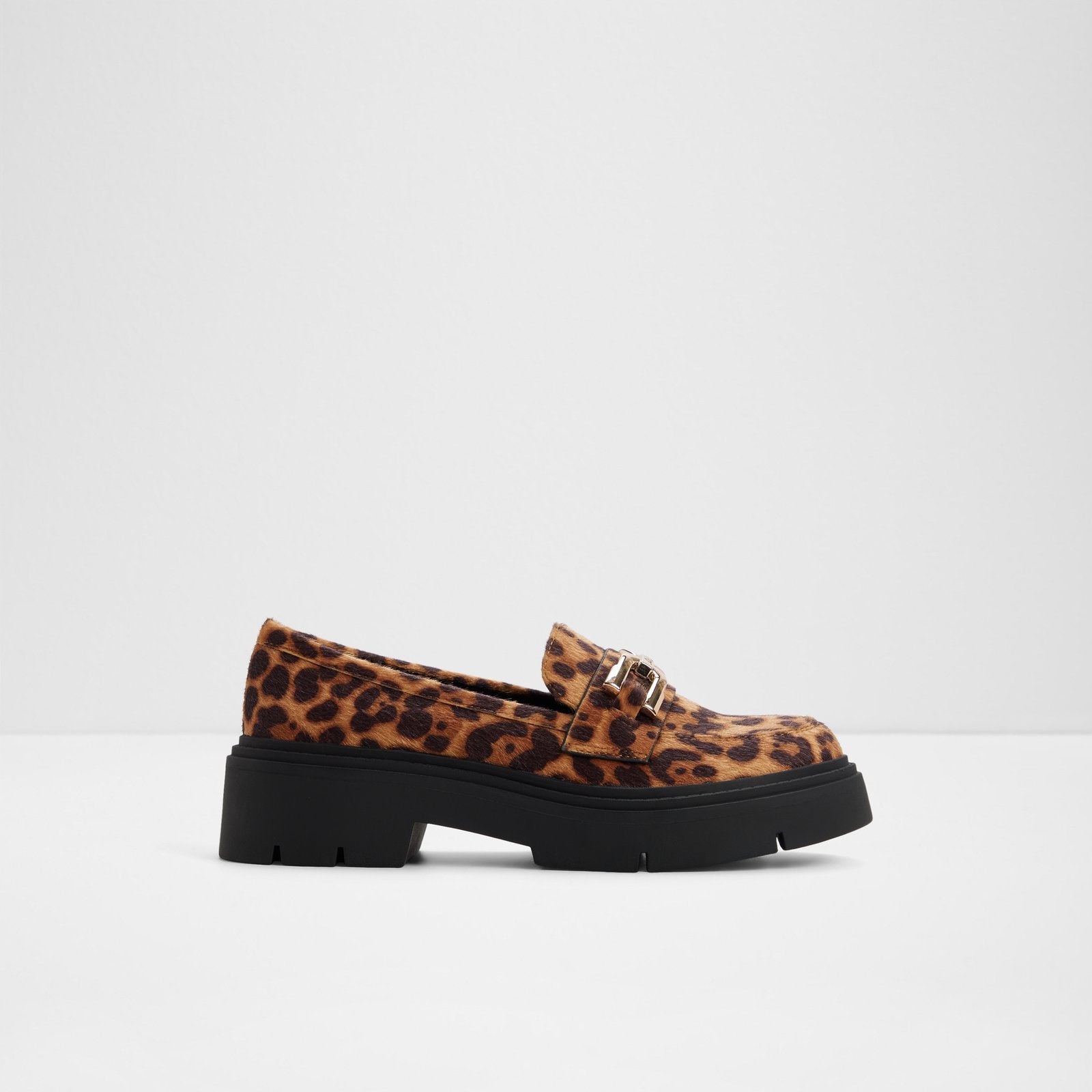 A bold, geometric metal accent is the focal point of this lug-sole loafer.
