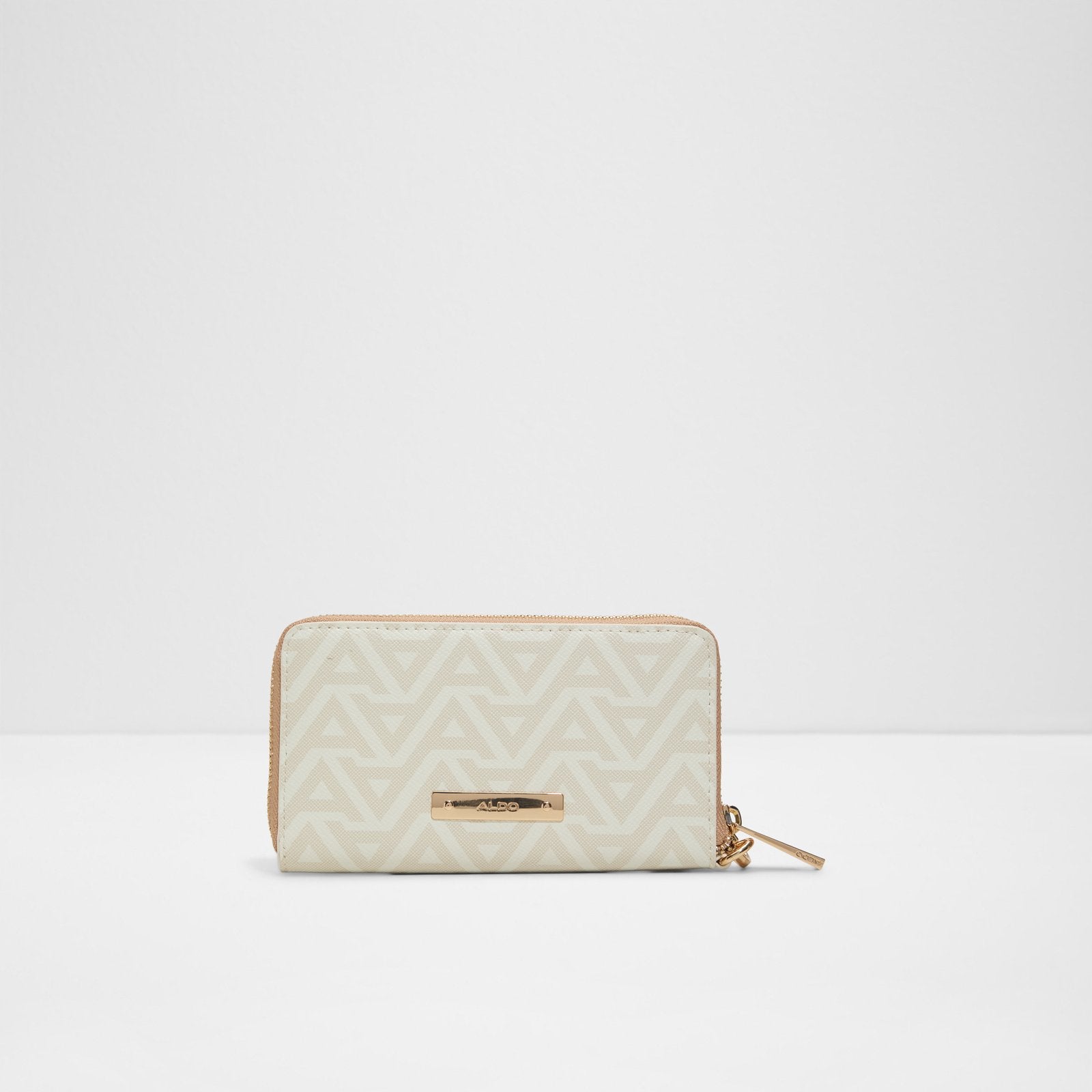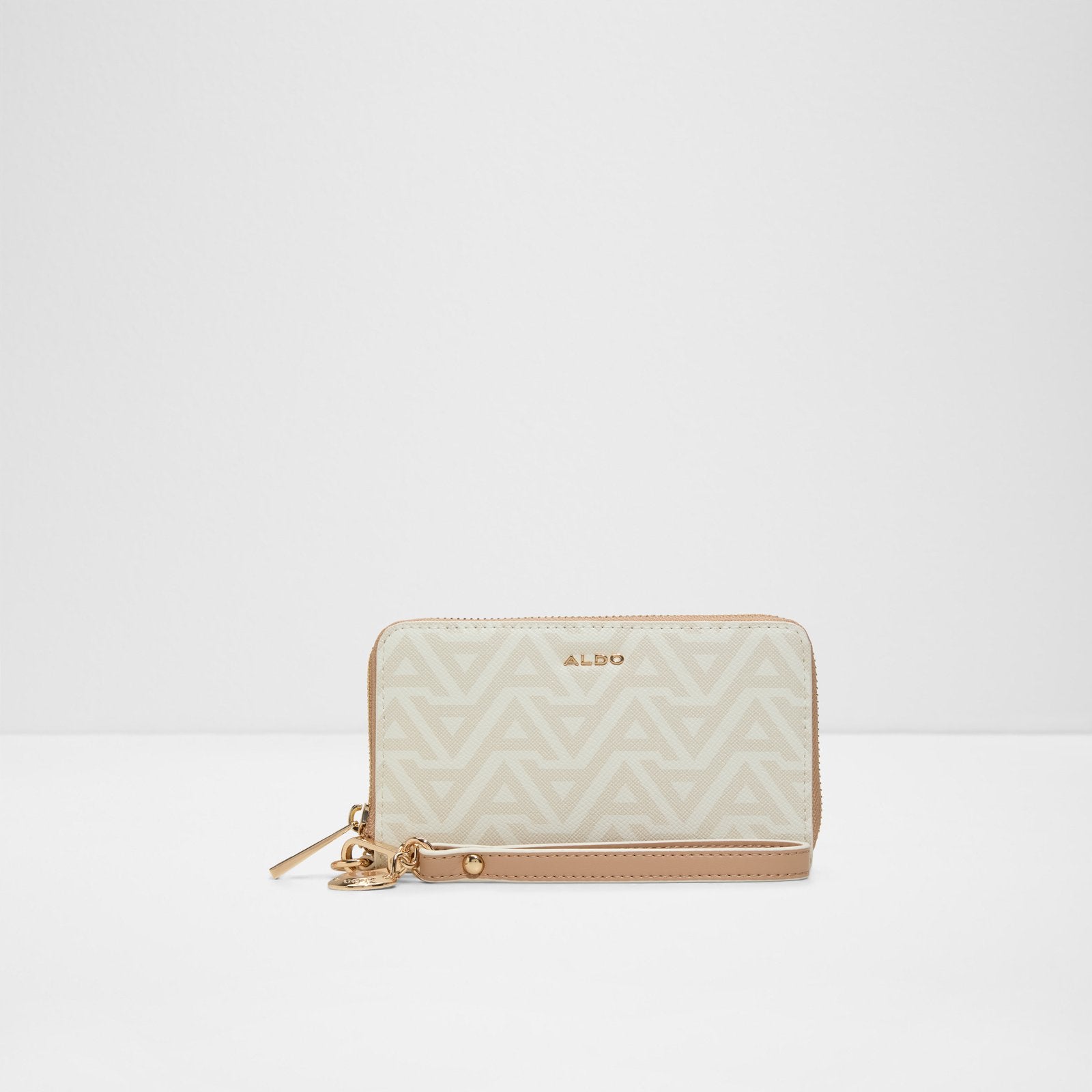 Elegant and compact with a soft monogram finish. Features gold-tone accents and handy card slots for everyday use.