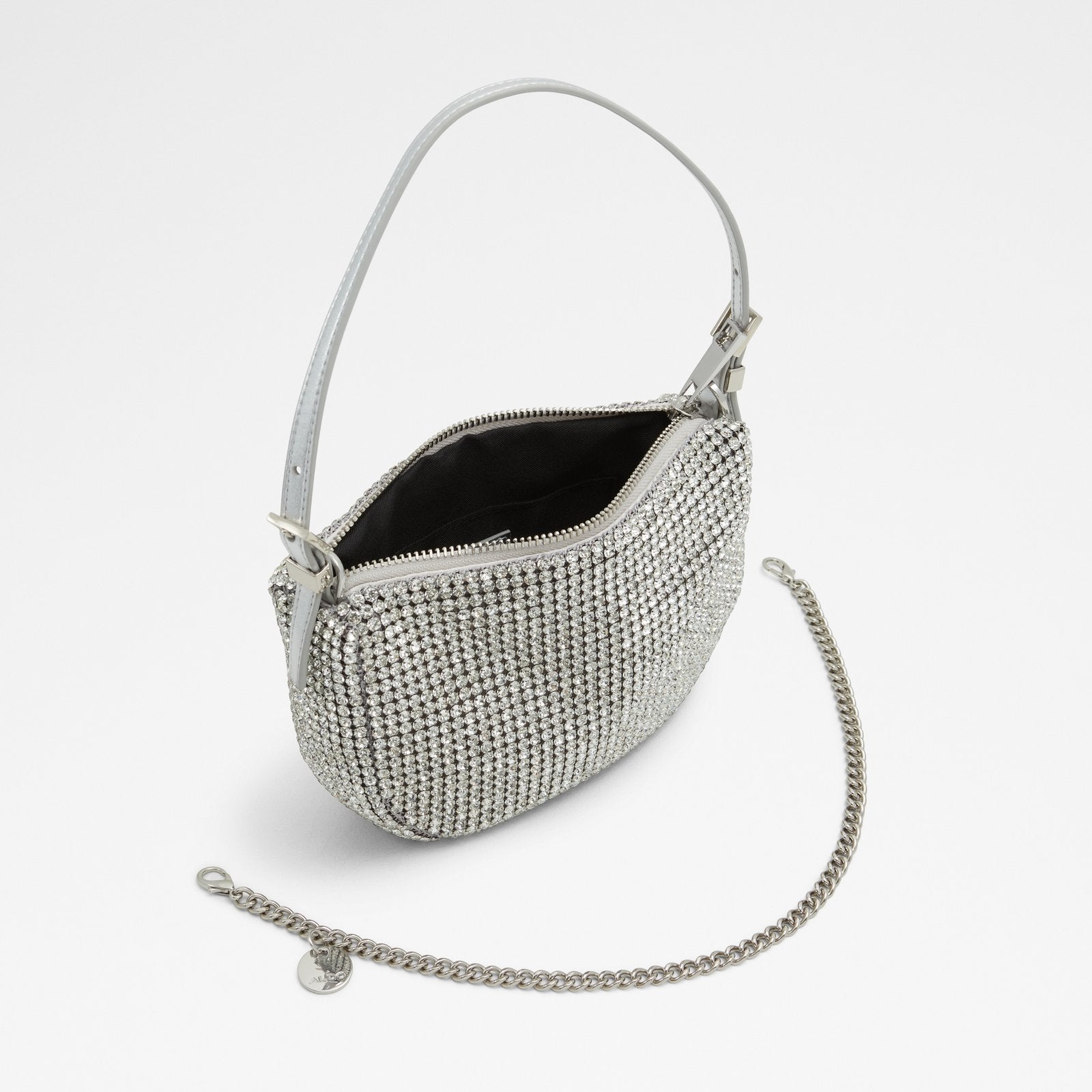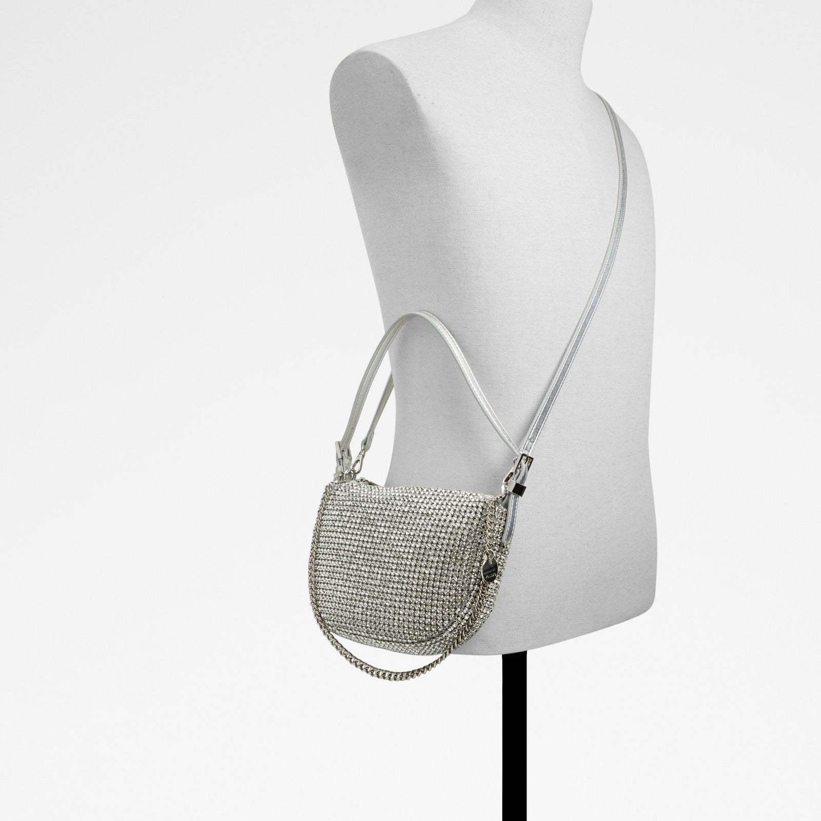 Evening out or hanging with friends, our posh little Mistera shoulder bag amps up the vibe you’re sending. Chic silver-tone finish with just enough rhinestone sparkle to turn heads. How fun is this?