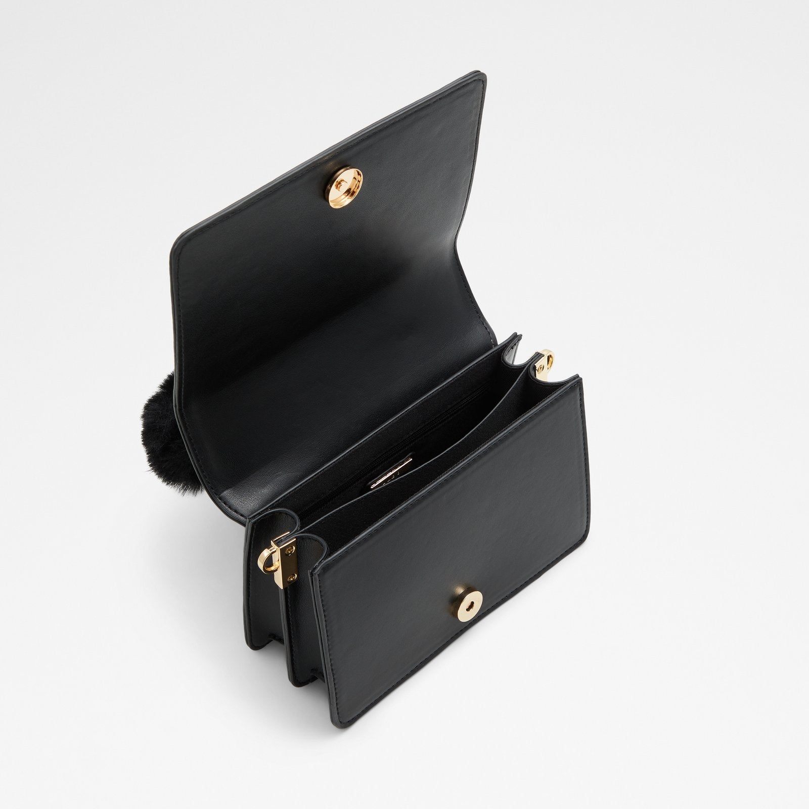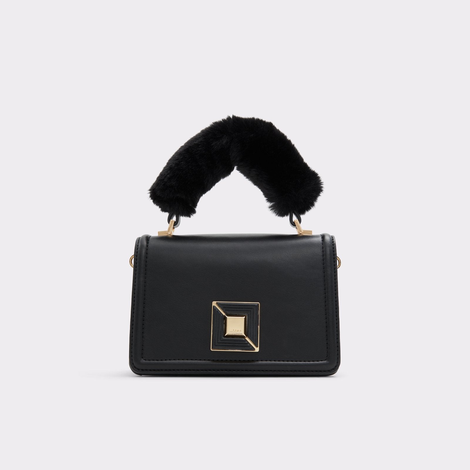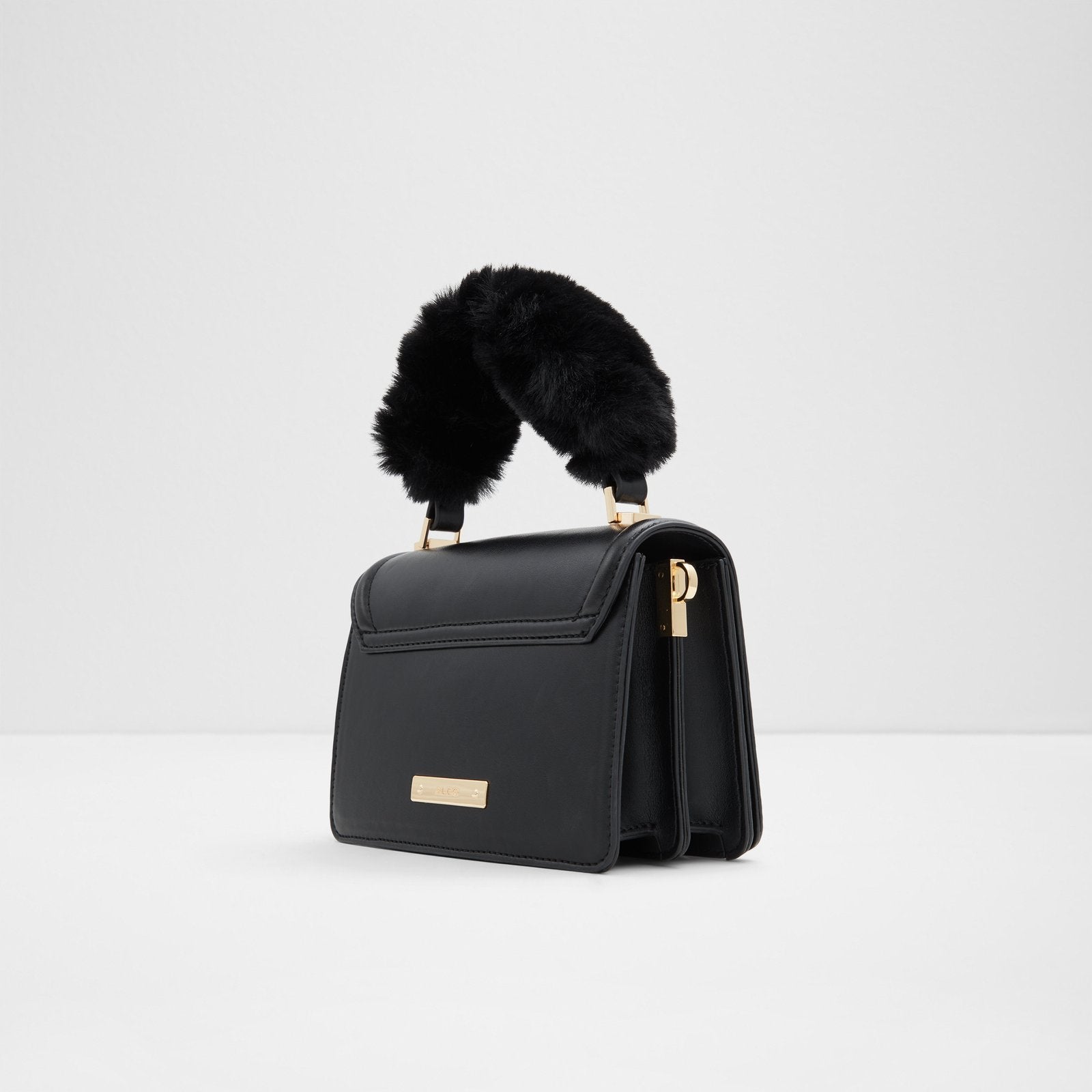 Add a little fun to your wardrobe with this neutral cross body bag featuring a faux fur top handle.